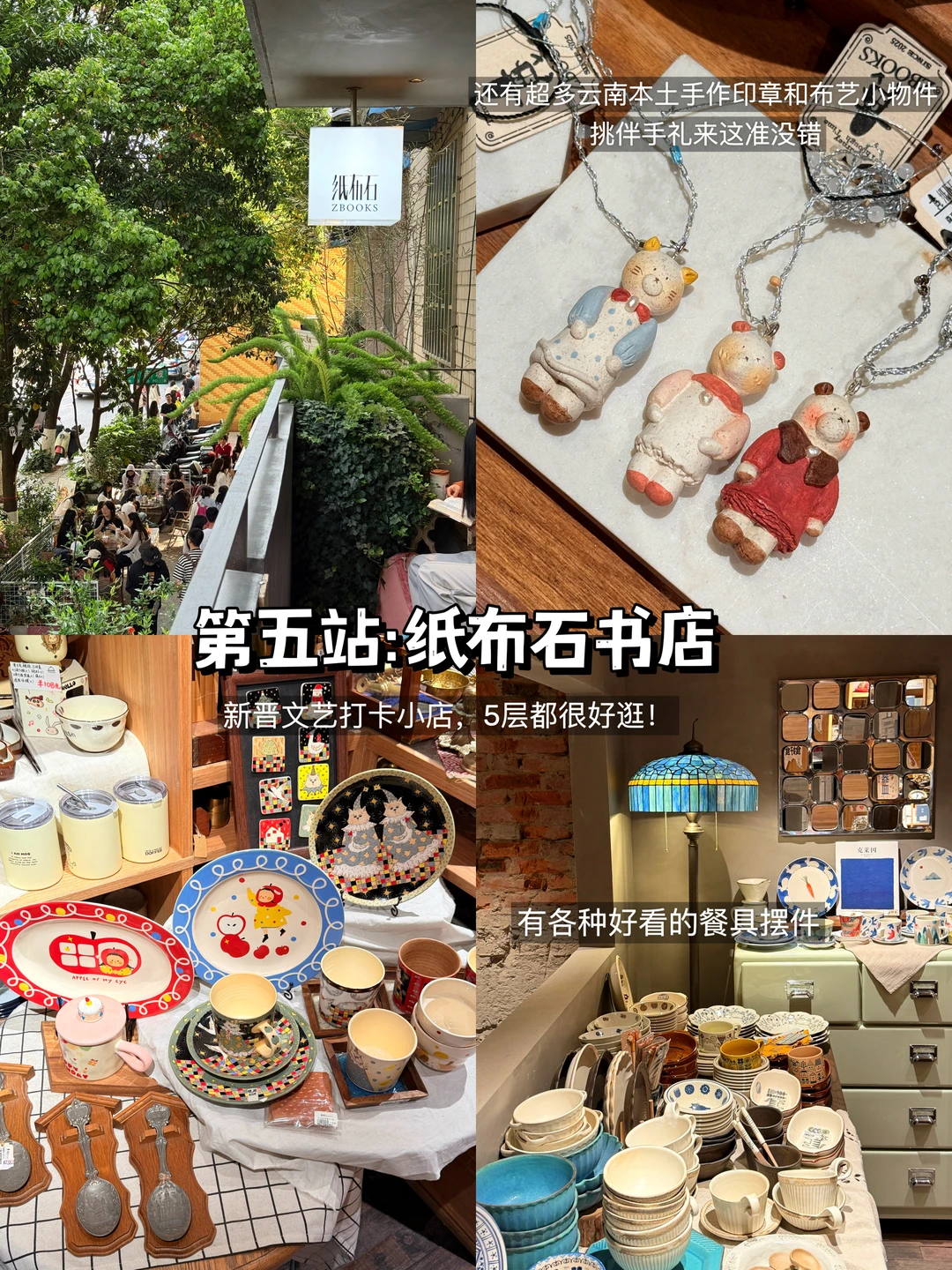 橡皮书店步行2分钟直达,一楼是文学社科区,二楼三楼每层都有不同的主题,有书📕餐具,云南本土手作印章和布艺小物件,很适合买伴手礼!(顶楼是很好看的绿植花园别忘了上去看看🍃)