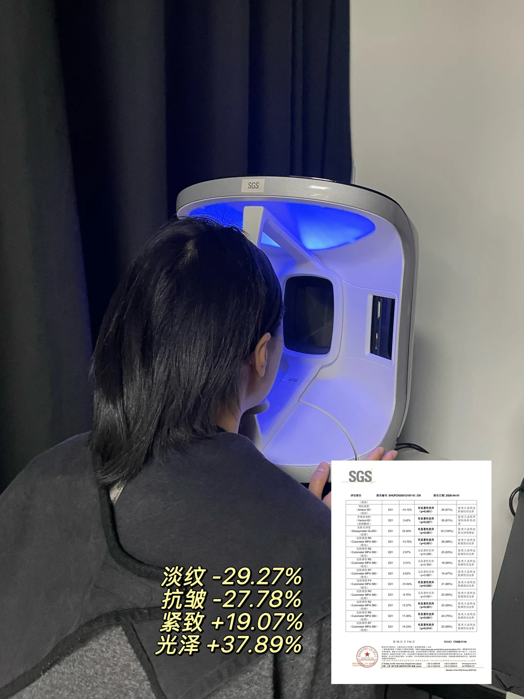 用了一段时间,又去SGS做了实测,我才更加确定了自己的好状态。眼角细纹变淡、脸颊变紧致,暗沉褪去,素颜也有通透好气色,垮脸感也有所改善~