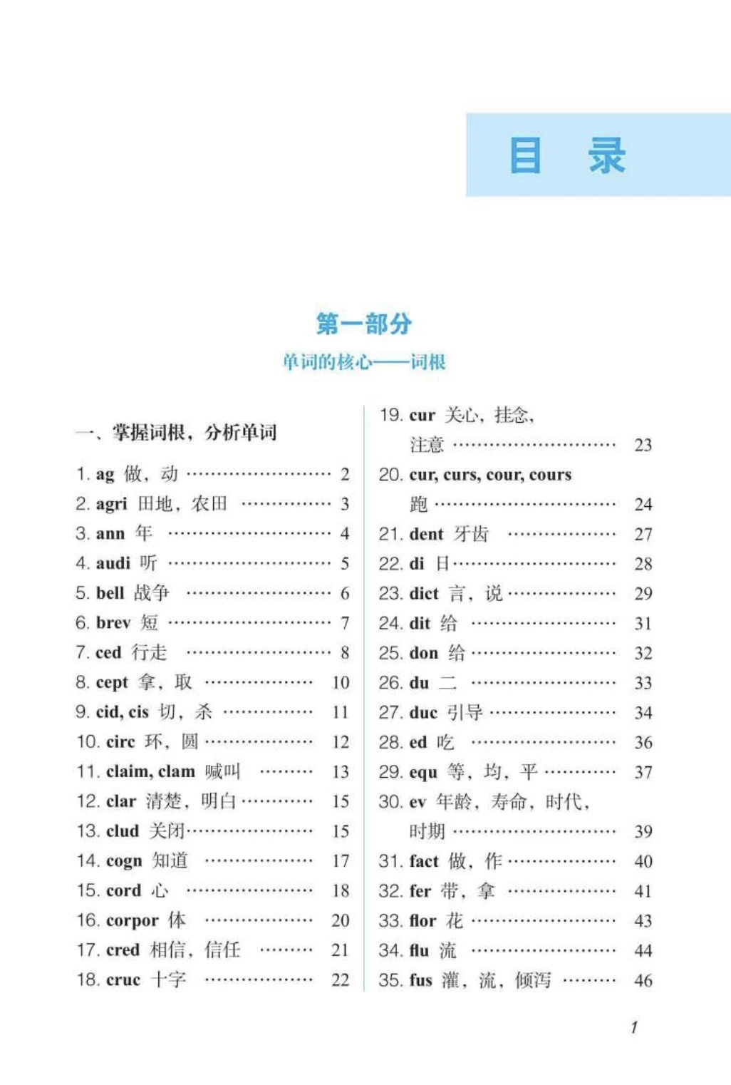 📈简而言之,英语单词的数量是很庞大的,但在这本书里,通过记忆和了解清楚一个词根词缀的含义和用法,我们就可以举一反三地记住相同词根词缀下的不同单词的含义,提高了我们背单词的效率[黄金薯R]!
