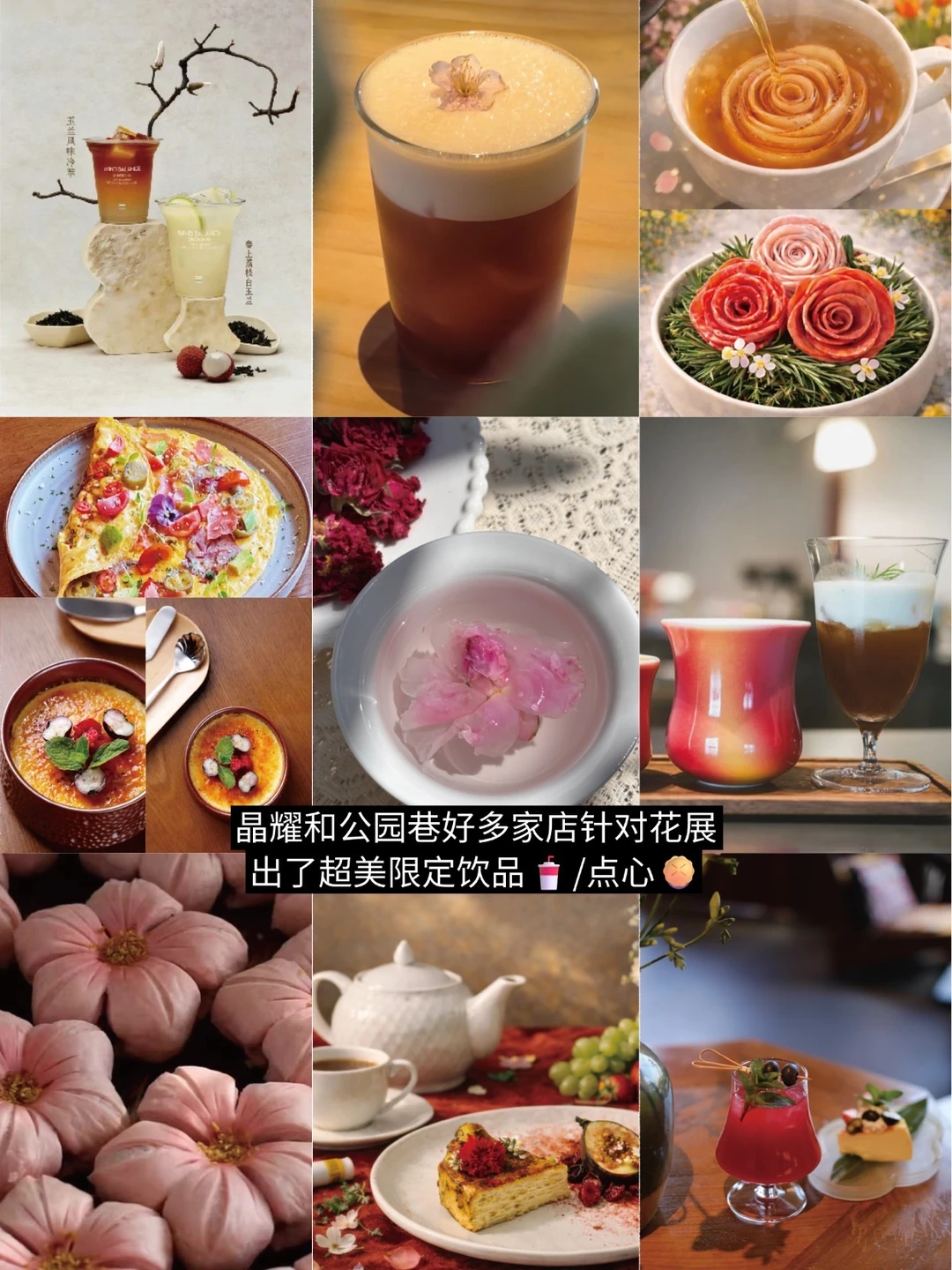 🍴烧肉多肉玫瑰、缤纷花季椰子鸡套餐、热茉莉龙毫柠檬奶茶...晶耀前滩、前滩公园巷、前滩源和陆悦广场好多家店针对花展出了超美限定饮品🥤/点心🥧