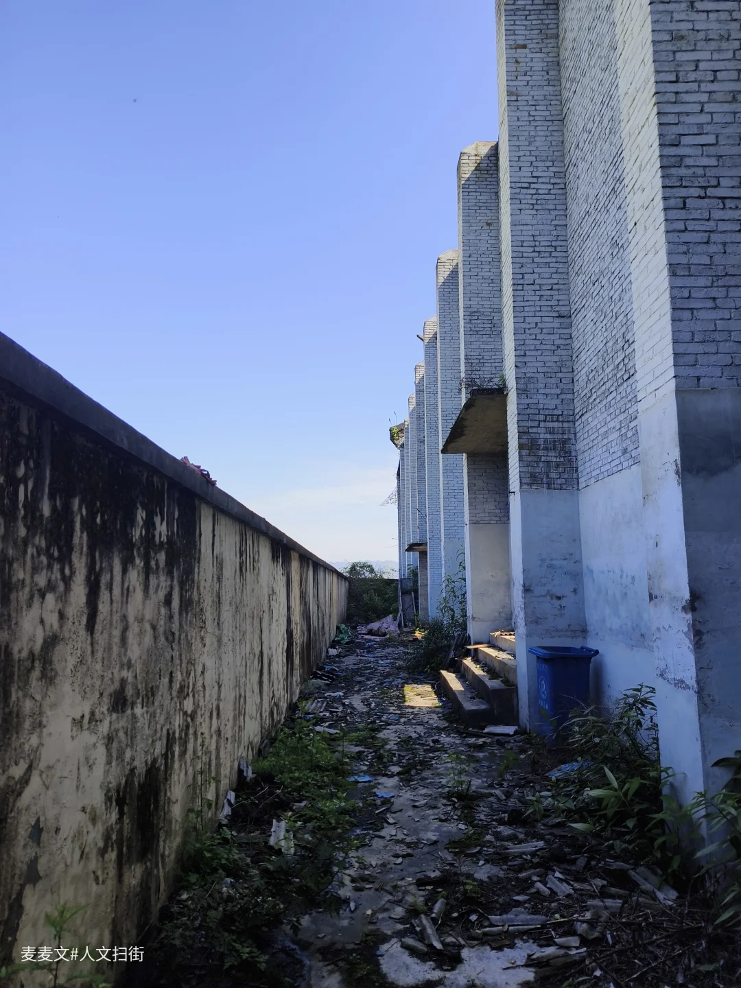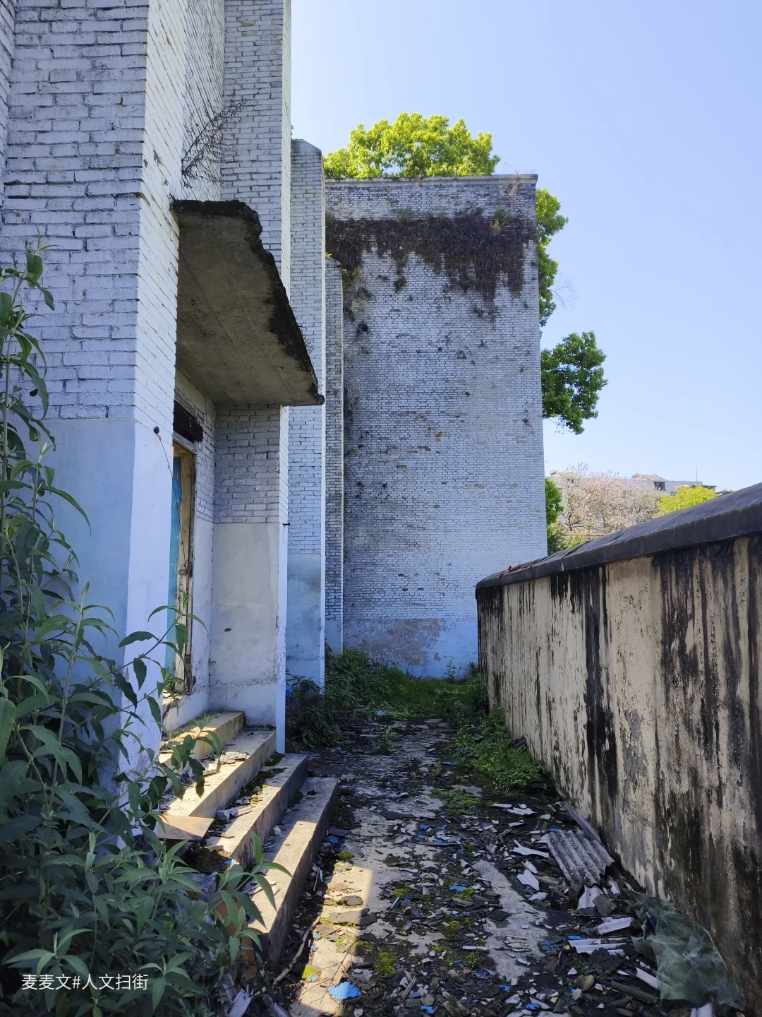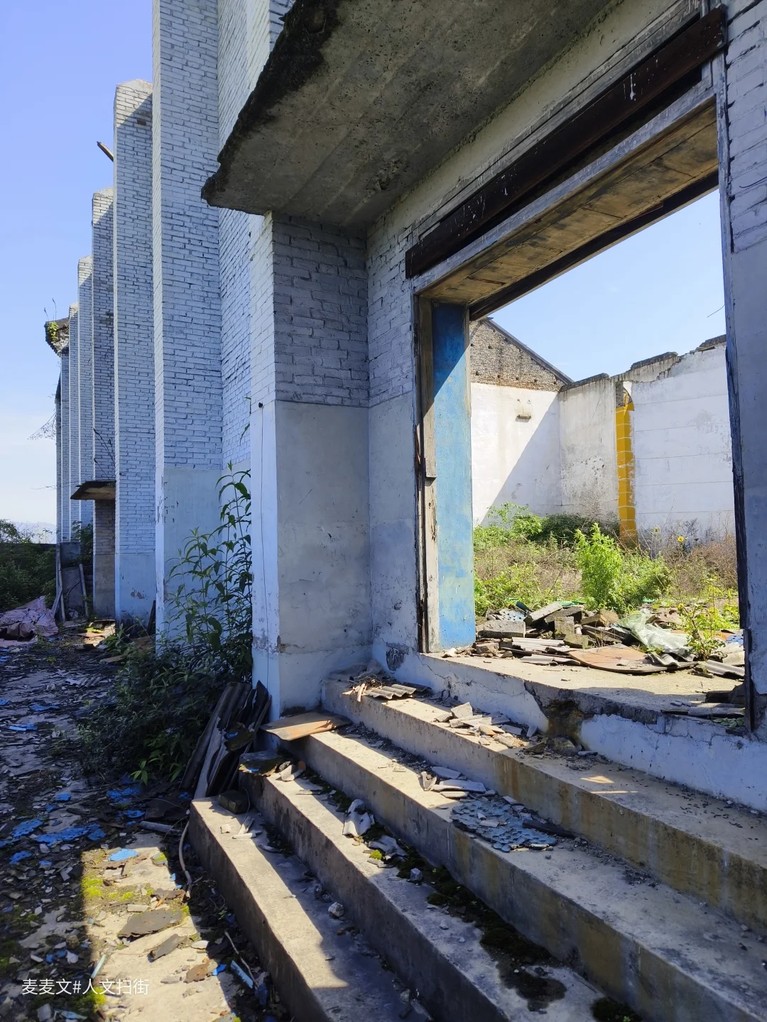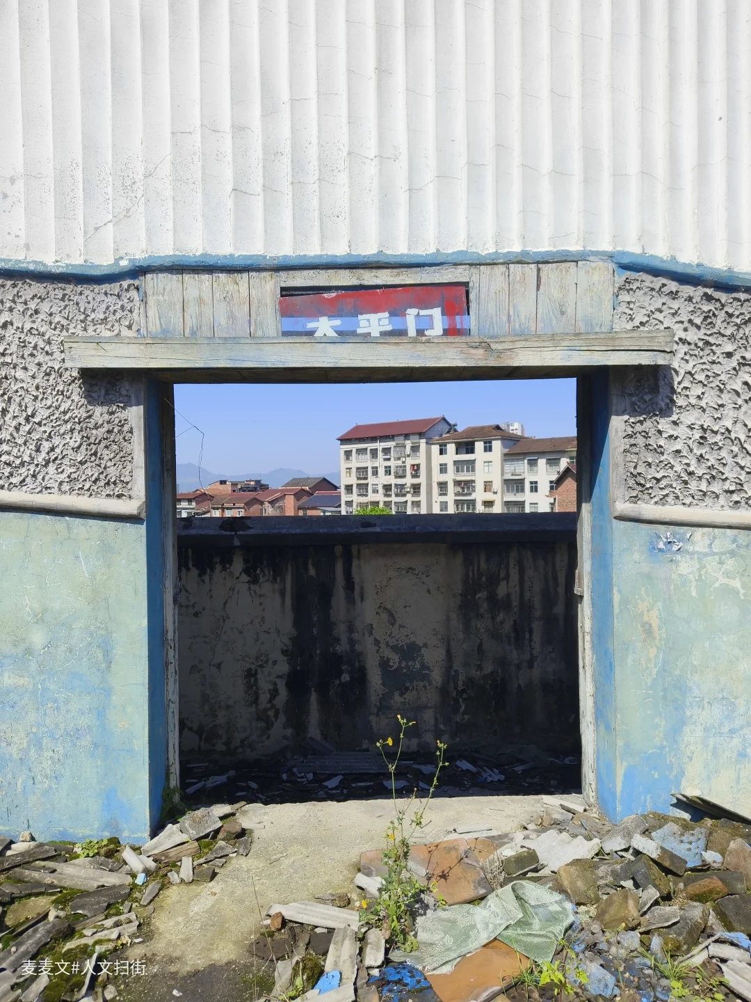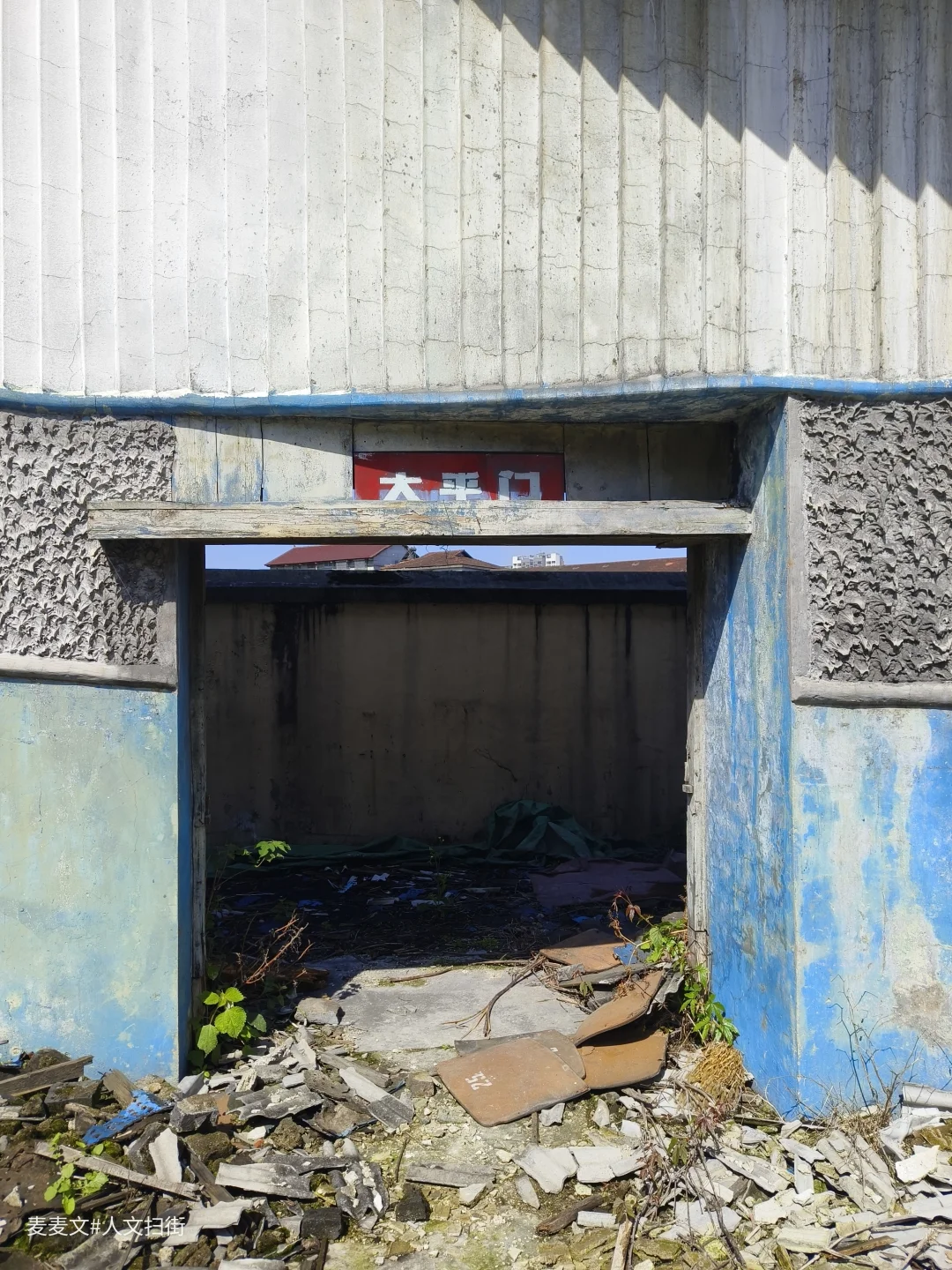 职工俱乐部台阶上的苔藓覆满岁月,散落的瓦片是时光的碎片。“太平门”的旧迹仍在,仿佛还能看见当年矿工家属、孩童们凭票入场的身影。