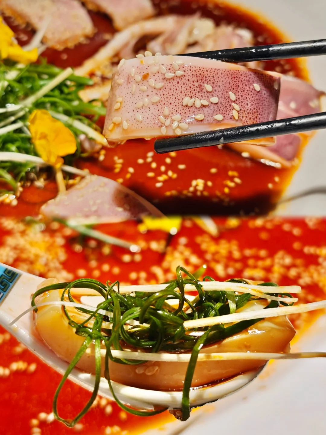 鱿鱼很Q弹爽口,泡满了红油汁,🌶微辣很开胃!