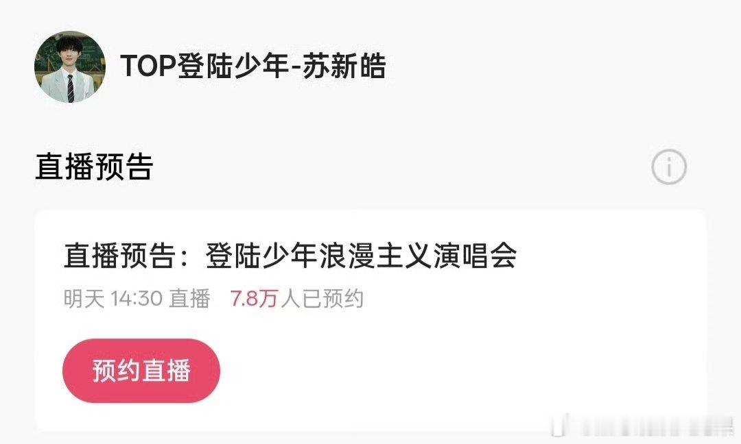 TOP澳门演唱会直播预约人数登陆少年演唱会单机位预约人数 TOP登陆少年澳门演唱会倒计时1天!线上单人直拍预约数据新鲜出炉:苏新皓7.8万断层领跑,朱志鑫6.5万紧随其后,左航3.8万、张泽禹3.5万、张极2.4万依次上榜!每一份预约都是满满的期待,坐等舞台炸场,你为谁蹲守直拍呢~