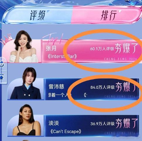 张月曾沛慈徐梦洁直拍榜TOP3✨ 《乘风2026》直拍三强锁定!情怀拉满的曾沛慈、元气唱跳徐梦洁、黑马逆袭张月,谁是你心中的舞台女王?实时投票正在进行,为心仪姐姐投出关键票,解锁更多直拍高光名场面!乘风2026
