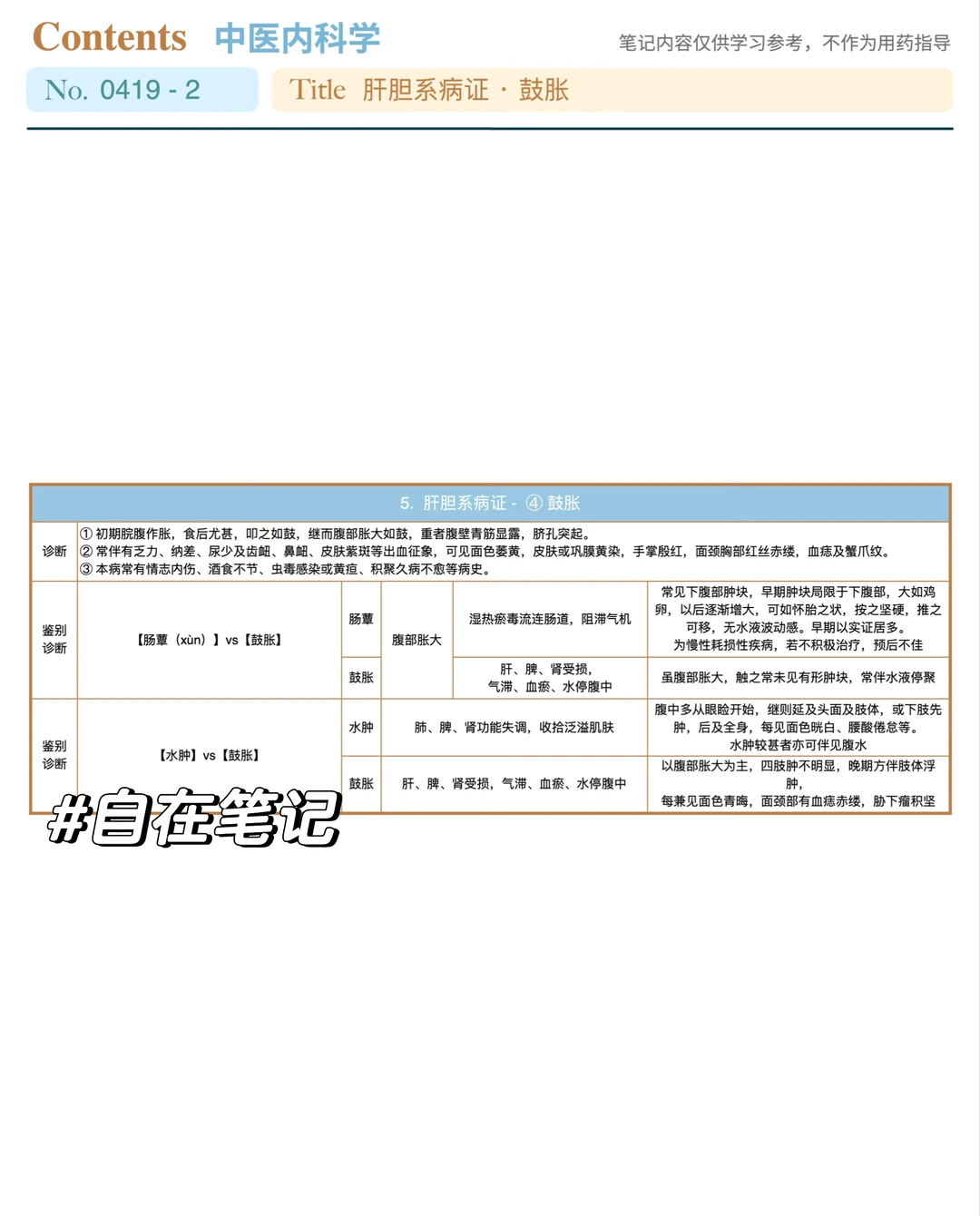 简单一句话概括:肚子又胀又大,像鼓一样绷着,就叫鼓胀。