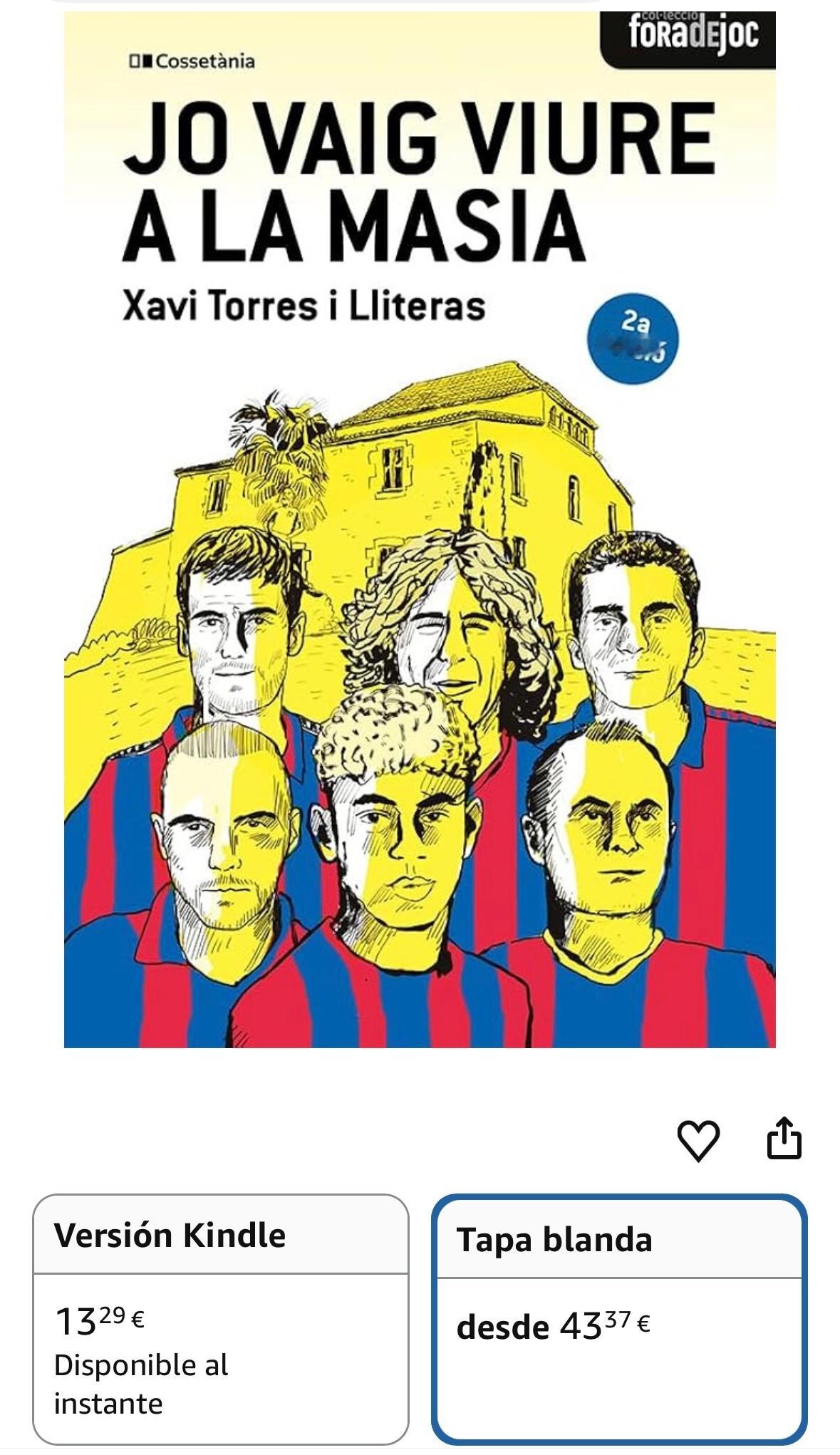 瓜迪奥拉叫你来读书——《我曾在拉玛西亚生活》(JO VAIG VIURE A LA MASIA)发售啦‼️这是一本记录成功故事、我们熟知的成长轨迹、创造历史的职业生涯的作品。但它的意义远不止于此,书中也讲述了那些不常被看见的真相:当你初来乍到时会经历什么、在拉玛西亚成长意味着什么,以及这条路上会留下什么。那些最终圆梦的人……以及那些遗憾止步于大门之外的人。瓜迪奥拉、拉波尔塔、伊涅斯塔、法布雷加斯、罗贝托、阿莫尔、斯托伊奇科夫这些巴萨的真正传奇都已读完这本书。我查了一下这本书目前在西班牙亚马逊有售,电子书售价13.29欧冠(106人民币),纸质书售价43.37欧元(347人民币),可以配送到中国。