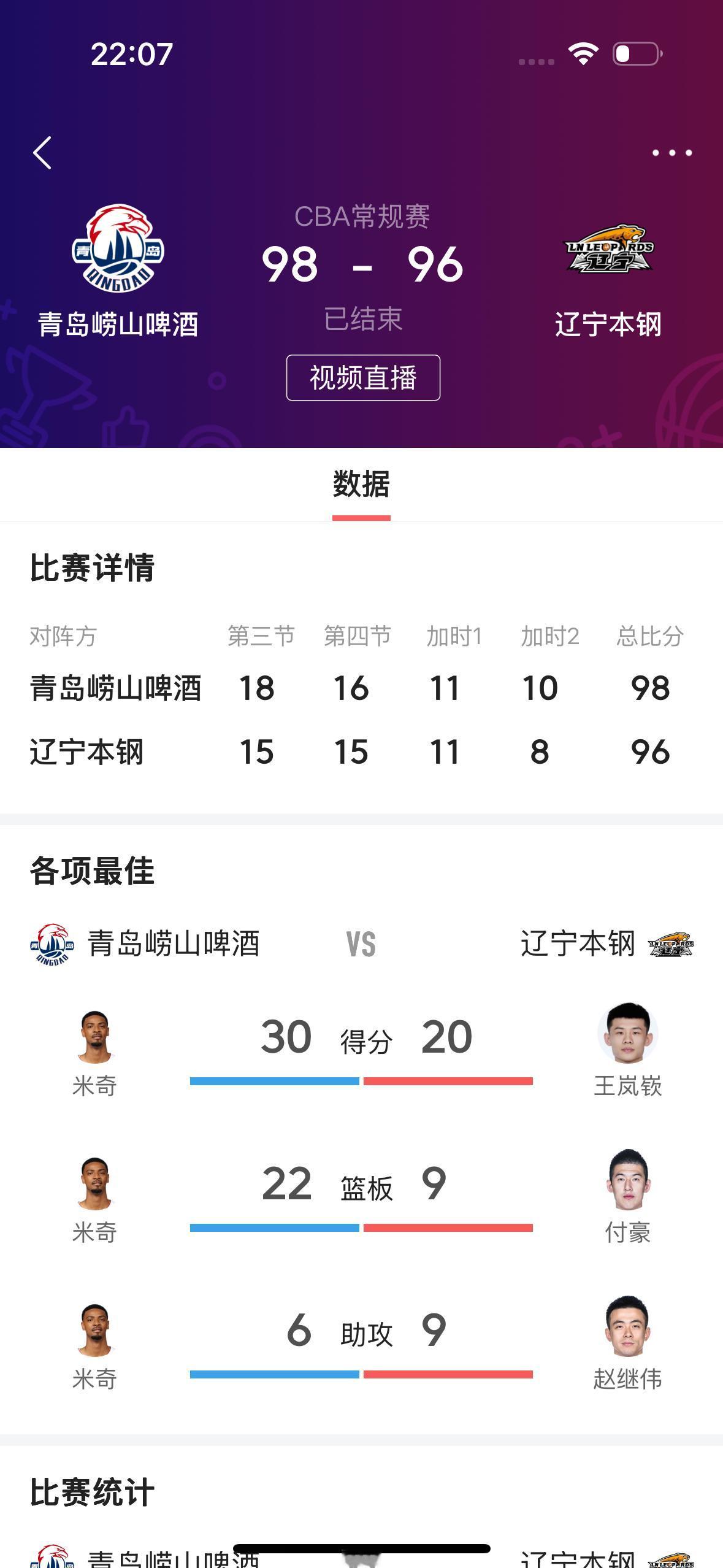 我预测正确,恭喜青岛崂山啤酒男篮最终通过双加时拿下了胜利✌️!