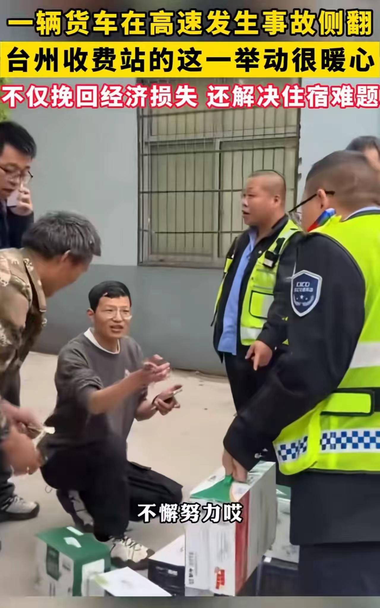 更让他没想到的是,收费站的工作人员不仅迅速帮他疏导交通、清理现场,还做了一个让他当场泪崩的举动——