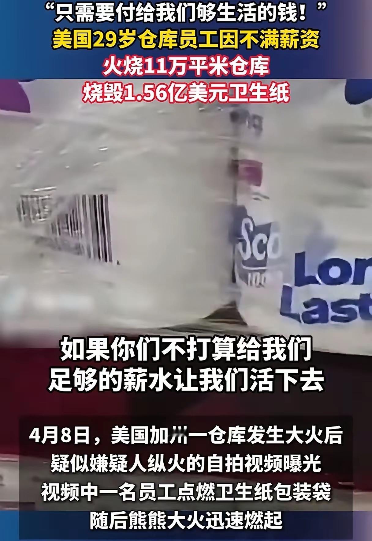 美国在“斩杀线”上挣扎的工人不满薪资待遇火烧11万平米仓库,烧毁1.56亿美元的卫生纸。