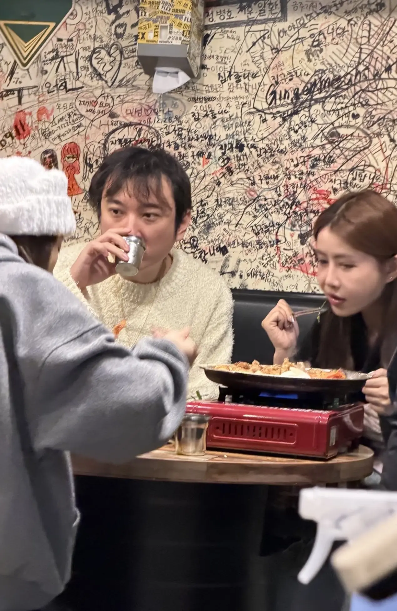 王思聪又去韩国度假了,跟朋友小黑吃饭被偶遇,校长额前单薄的刘海很抢镜王思聪