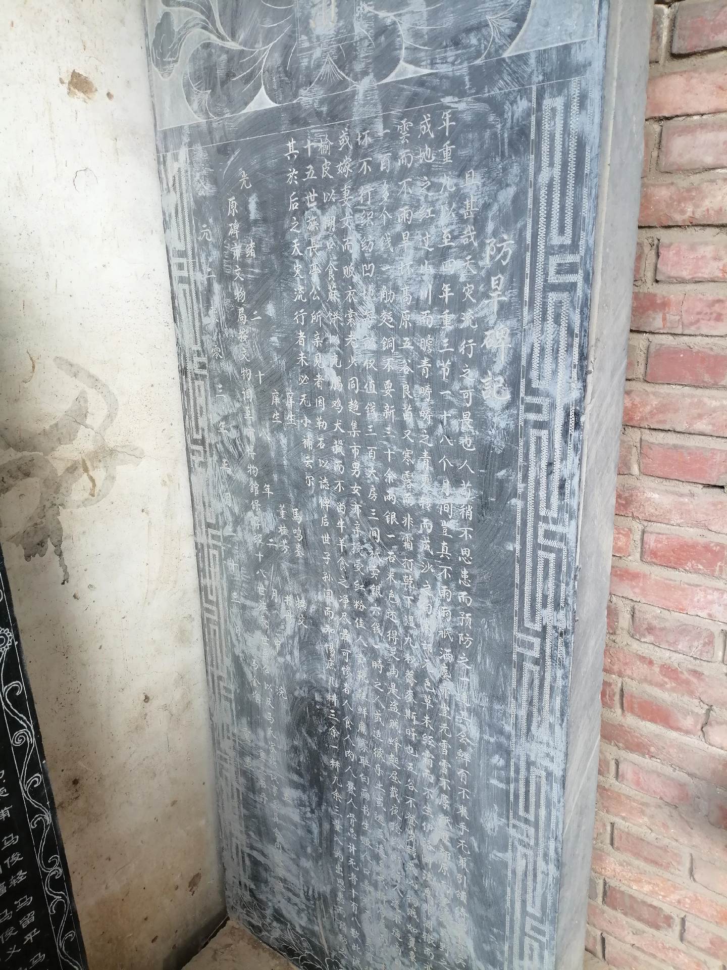偃师大口镇马村马氏祠堂,建于清末民初,祠堂门额上刻“永言孝思”,院内东西偏殿饱经沧桑,大殿门额石刻“籍隶晋洪”,殿廊下有一清朝防旱碑(复制碑),原碑立于光绪二十八年二月中浣,记录了光绪二年九月到光绪四年三月河南连续大旱十八个月的情景 ,原碑保存于偃师博物馆。