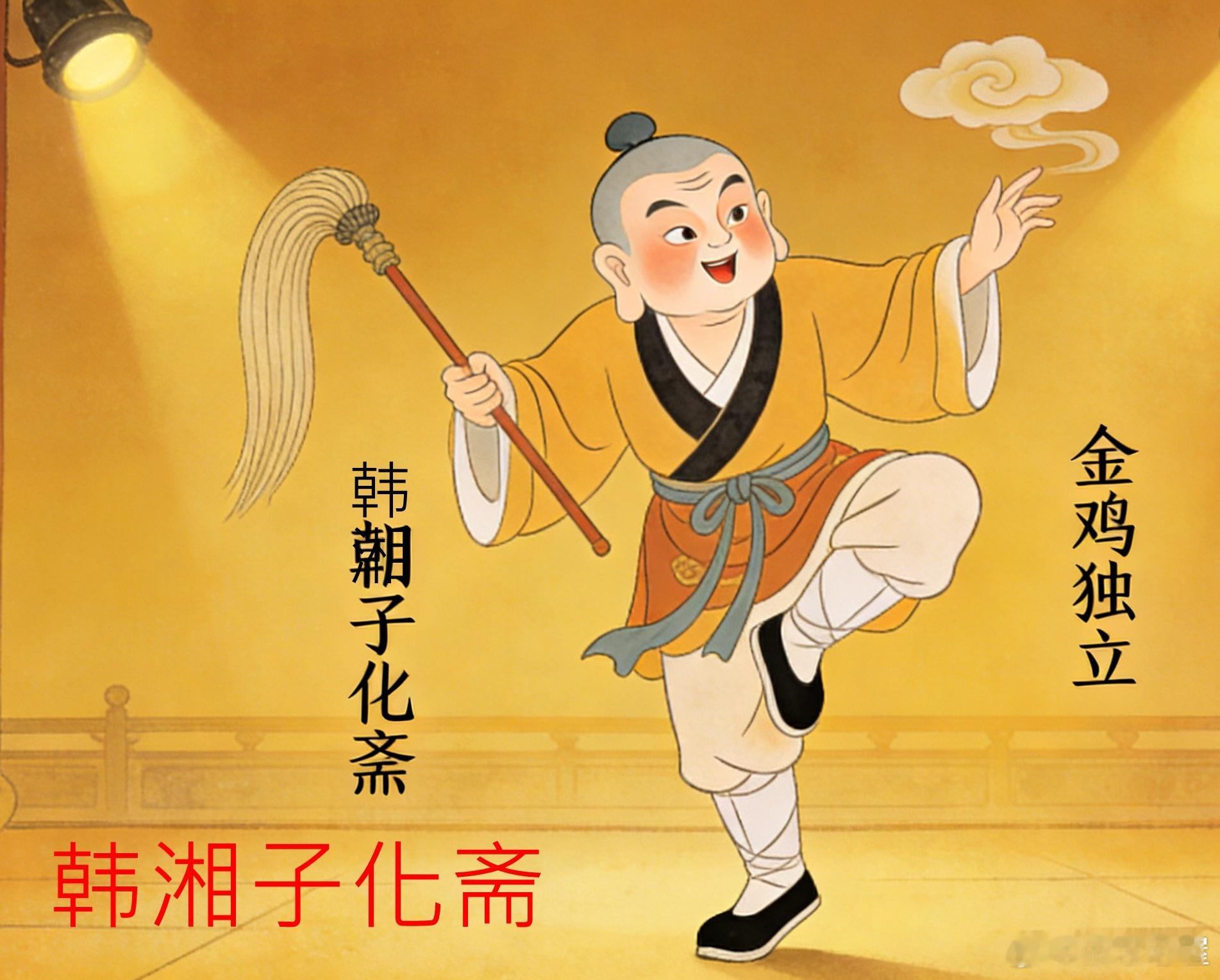 黄梅戏:金鸡独立唱的是哪一出?◎老屋张忠/1800字六岁以前,我在东流县的县剧场里看过不少戏,愿因是我有个爱看戏的小姨邹云霞,从我记事起,东门岭头上的邹家大屋被县政府有偿征收后,奶奶(家婆)杨嫦娥和母亲邹月霞,就领着我们住进了东门口岭脚下的云霞小姨屋里,我家住东厢房,小姨一家住西厢房。云霞小姨比我大六、七岁,不管是到北门湖洗衣,还是到双古井扯水,走到哪里都把我带上。小姨和她的闺蜜柳爱珍等一大班人喜欢看热闹,印象最深的有几件事:一个是东门外上头上枪毙犯人,她们虽然带我去了,人小挤不上前,只看了个寂寞。一次是闪电霹雳季节,北门湖双塔中学里雷打死了一个人,跑去看,大人不给靠前,好不容易挤在大人腿网里,望见中学饭堂角落里,躺着个人,脸上盖着黄表纸,也只看了个“害怕”。一次是东门外牌坊边近有个东流县机械厂,厂内四合院式厂房,下坡有一排平房内有人结婚,听说是西街汪家流?在机械厂办喜事,小姨带我跑去讨“新娘果“……我要说的重点是小姨和街坊四邻一大班人经常带我去剧院那个小窗洞里买票看戏,小伢子免票,有时看到半截就睏着了……其中戏剧情节大部分都忘了,只记得两三个“麻影子“。一个是我母亲结拜的七姊妹中的小姨娘叫杨满枝,戏没看明白,演员满枝娘的样子记住了。还有一个戏情记着特别深刻,虽然记得深,但人太小无法知道具体讲什么,只晓得舞台上一个古装男人,穿着破衣啰嗦的,手拿云帚,一只脚站着一直唱,雷打不动地站着唱啊唱啊……我的双眼皮开始打架,小姨把我驮到家。第二天问我唱么事,我说,“独脚大仙”……那么问题来了,我把它交给读者,万能的朋友圈,这个“独脚大仙”站那不动,一唱唱半天,是么事戏呢?