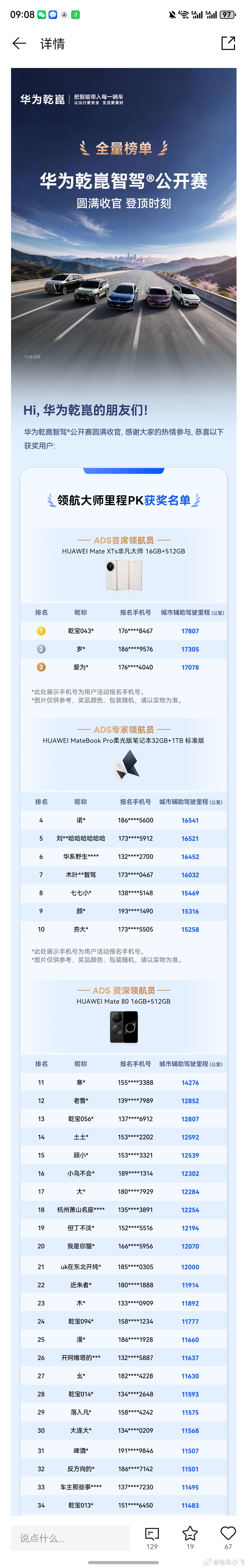 华为乾崑智驾公开赛的最终榜单,高手在民间。