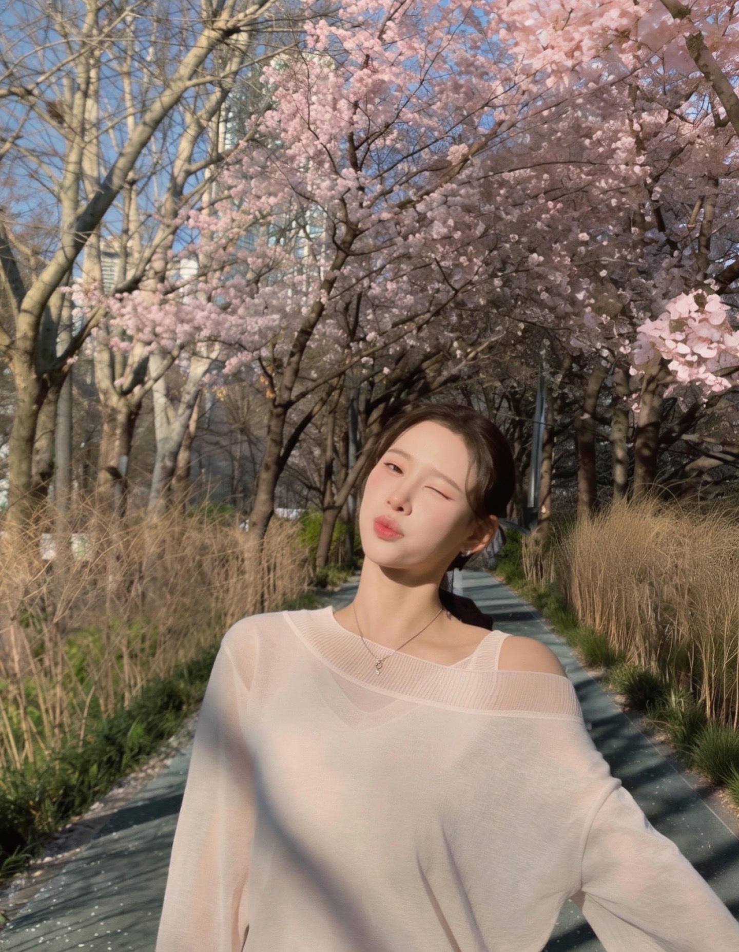 娜妍熙斗看樱花约会