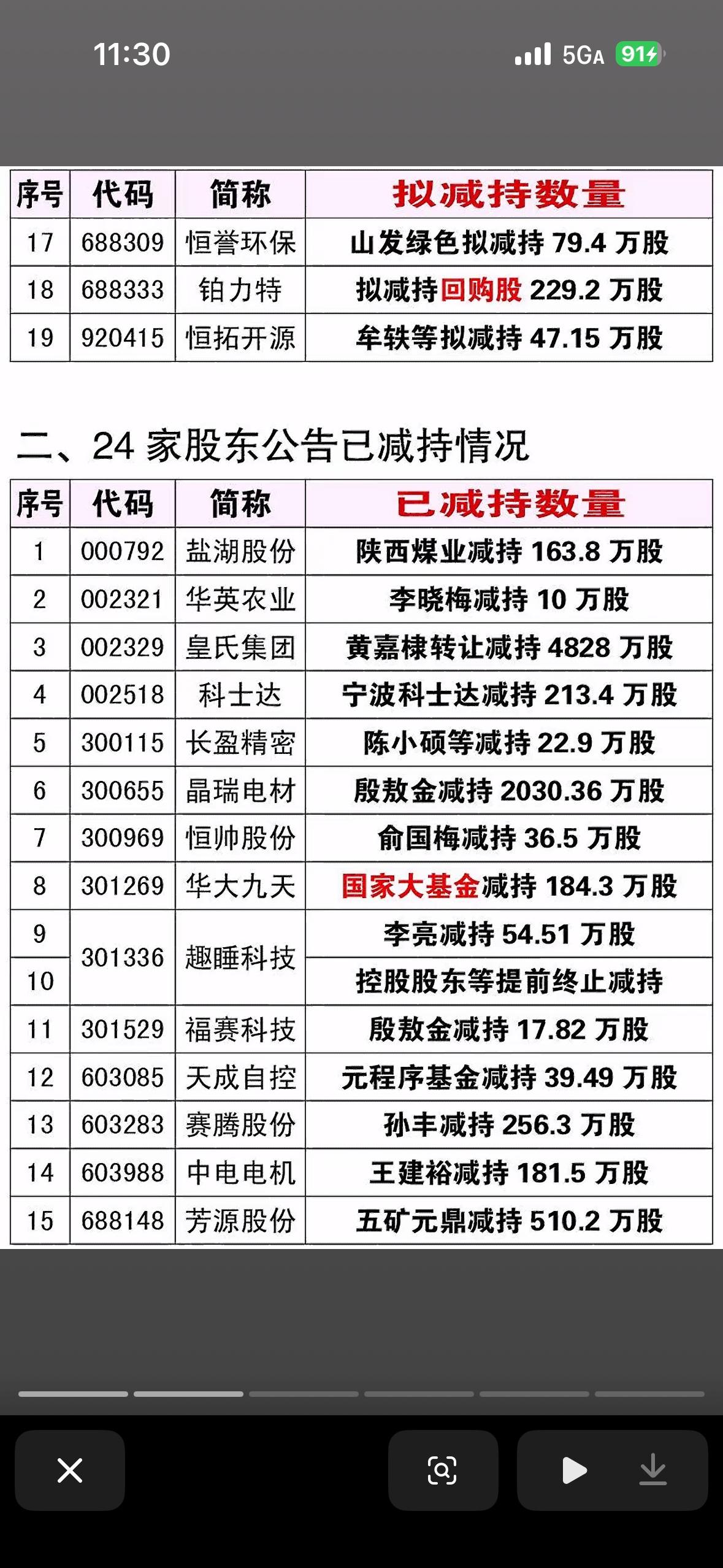 重点公司减持计划解读
