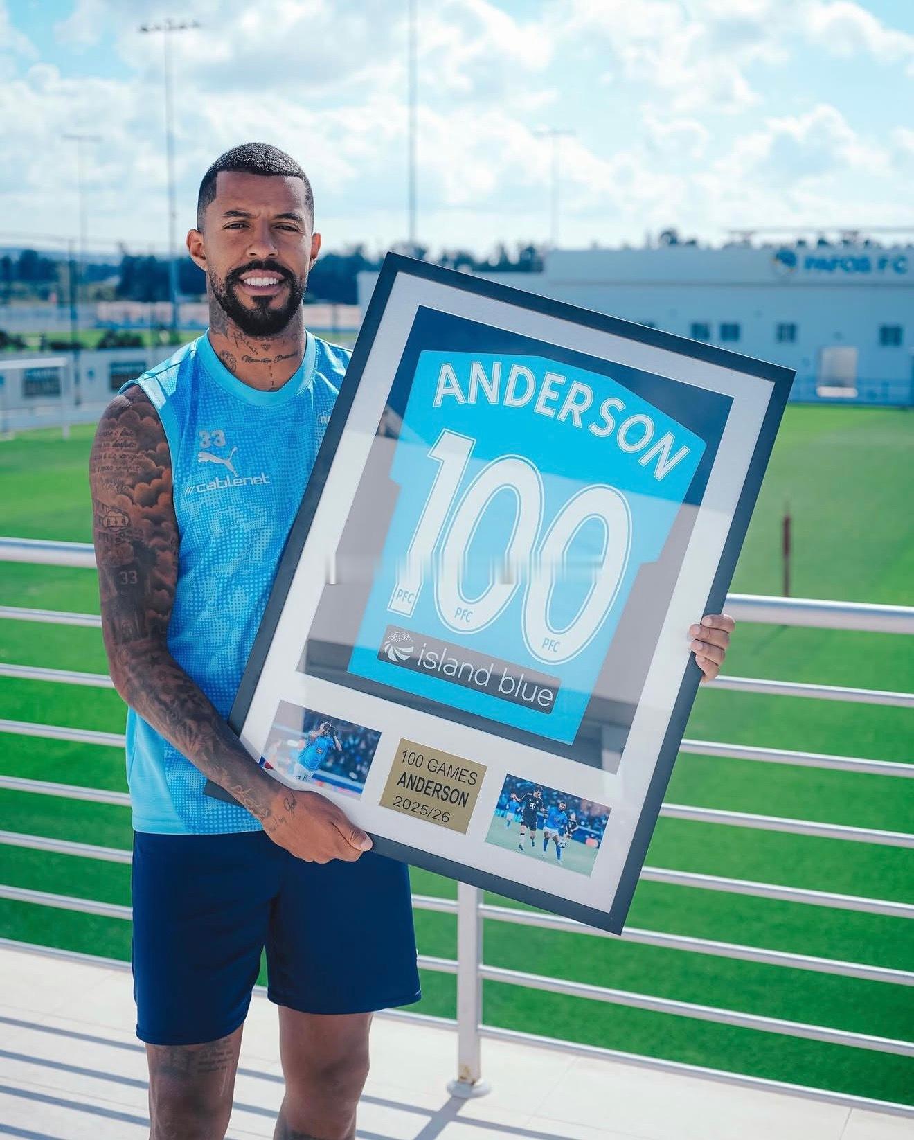 目前在塞浦路斯联赛帕福斯俱乐部效力的前国安外援安德森·席尔瓦,达成了代表俱乐部出战各项赛事100场的里程碑。100场31球,效率谈不上高,但也跟队拿过联赛冠军,历史性地进入了欧冠,算是找到了适合自己的归宿。