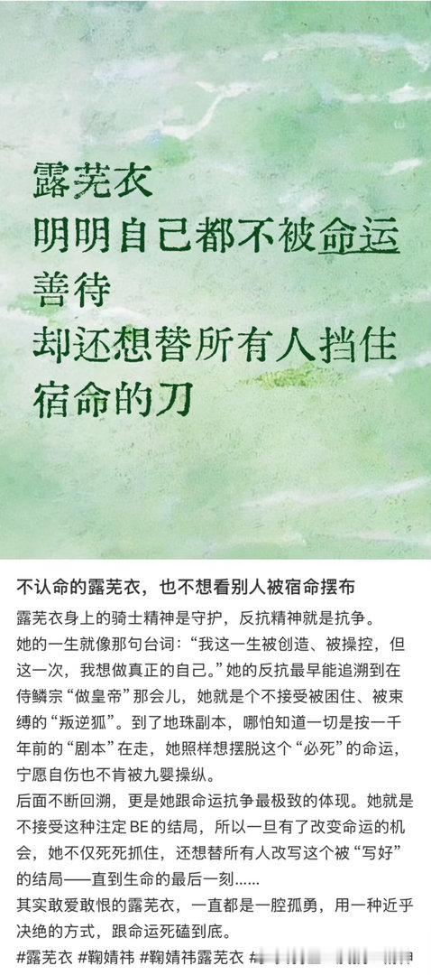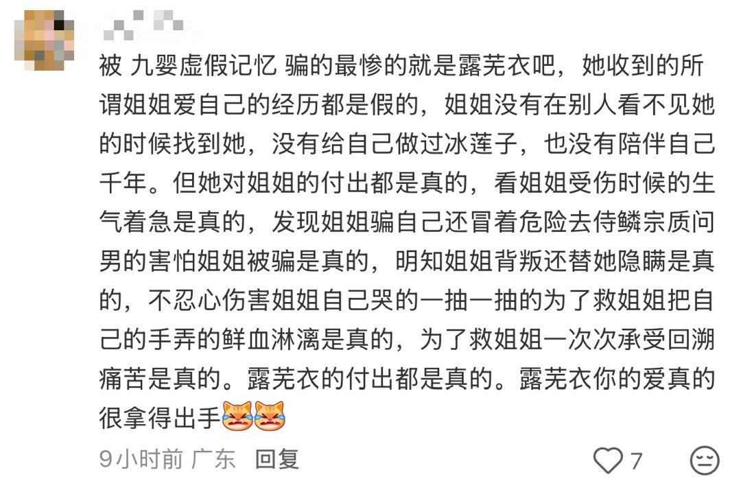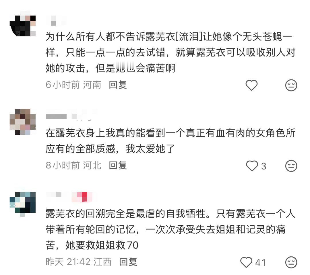 看懂回溯的人都知道,露芜衣这种“我偏要”扛下一切救人的意识觉醒,是救姐姐就寄灵,是为苍生阻止旱灾发生。却被恶意解读。没耐心看一个角色从碎片长成完整的自己,只想给她贴标签然后划走的,麻烦别扰乱观剧环境了。