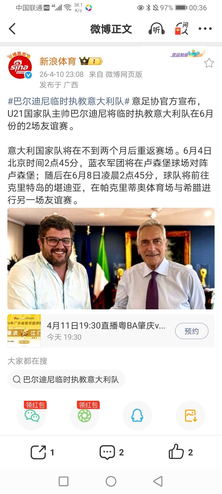 2026年4月11日-2025-2026CBA常规赛第34轮(第二阶段第14轮) 宁波85-93被浙江广厦逆转(卫冕冠军浙江广厦男篮获得三连胜/宁波男篮遭遇三连败)/北控65-84北京(北京男篮获得四连胜/北控男篮遭遇四连败)/广东117-84大胜吉林(广东男篮获得两连胜)/青岛98-96双加时逆转战胜辽篮(潜力赛:21-23)(手帝致命犯错 辽篮终结两连胜 卡位战再次失利 彻底失去冲进前八的希望)/上海119-116逆转战胜福建(上海男篮获得十八连胜/福建男篮遭遇三连败) 2026中超联赛第5轮 大连英博3-0大胜浙江俱乐部(大连英博获得三连胜/浙江俱乐部遭遇两连败) 部分重点赛事预告:CCTV5直播:20:55 2026U20女足亚洲杯1/4决赛 中国-乌兹别克斯坦 CCTV5+直播:19:30 2025-2026CBA常规赛第37轮(第二阶段第14轮) 山西-新疆 CCTV16奥林匹克频道直播:19:30 2026中超联赛第5轮 *上海申花-上海海港 CCTV5客户端直播:10:00/12:55/17:00 2026亚洲羽毛球锦标赛半决赛 其他:19:35(4场) 2025-2026CBA常规赛第37轮(第二阶段第14轮) 南京(同曦)-广州/深圳-江苏/四川-天津/*浙江稠州-山东 19:30 2025-2026WCBA半决赛第3轮 19:00(2场)/19:35 2026中超联赛第5轮 重庆铜梁龙-武汉三镇/青岛西海岸-辽宁铁人/河南俱乐部-山东泰山 15:30(2场)/19:30(3场) 2026中甲联赛第4轮 宁波俱乐部-深圳青年人/长春亚泰-陕西联合/南通支云-苏州东吴/广东广州豹-无锡吴钩/梅州客家-广西恒宸