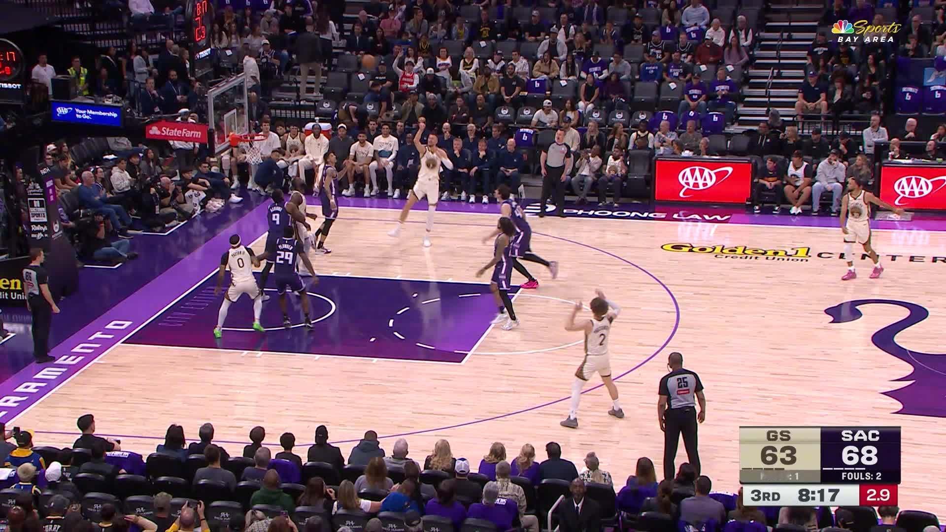 波尔津吉斯后仰跳投得分!勇士65:68国王。勇士vs国王