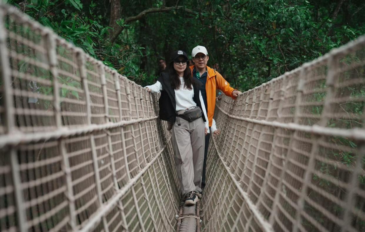 郭晶晶霍启刚带三个孩子游广西,夫妻俩低调松弛,孩子们有少年气,一家五口站在青山绿水下,背影十分温馨有爱。