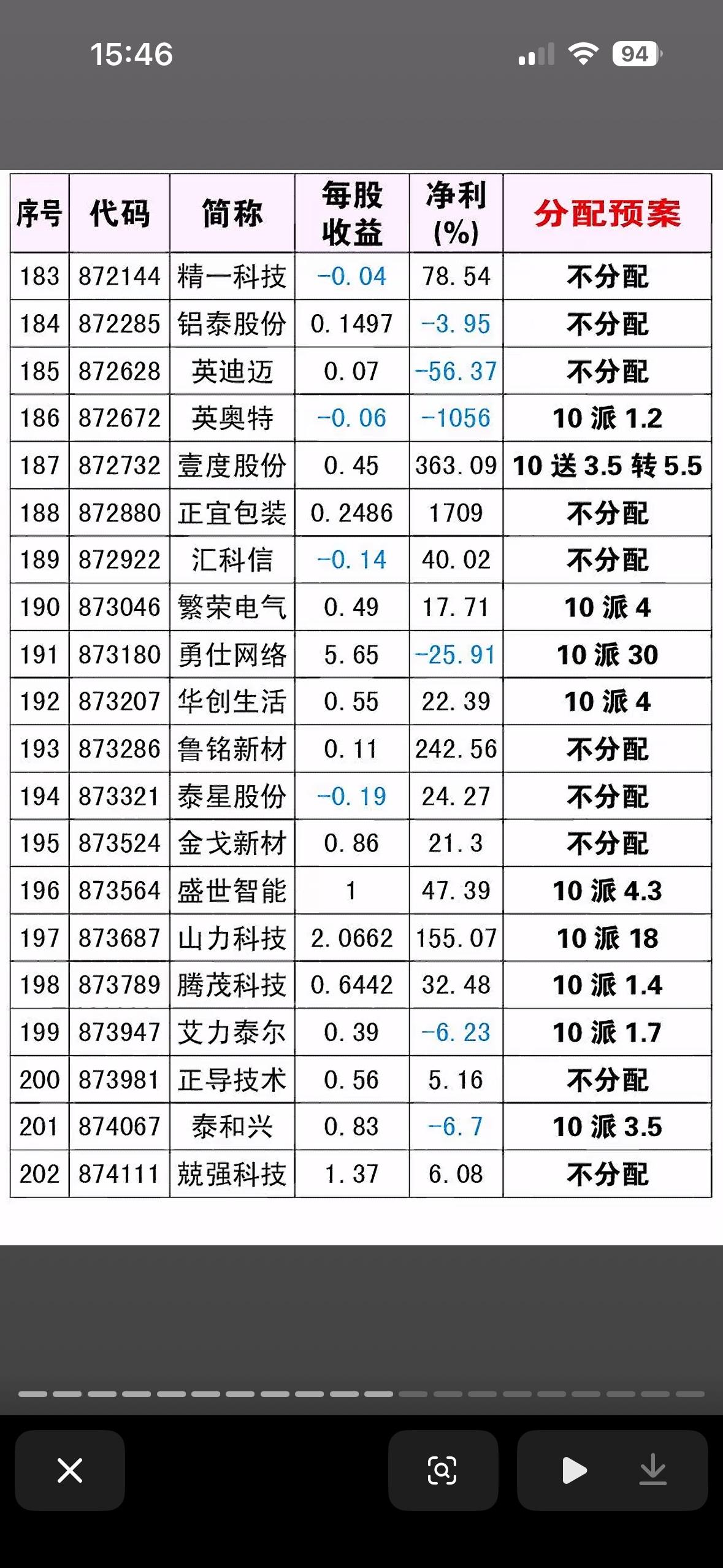 - 胜宏科技 (300476): 10派19.949377元。分红金额极高,且数字非常精确(通常是因为按照总股本比例精确计算),显示公司盈利能力极强,且愿意与股东分享利润。