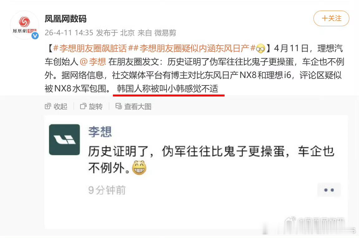 李想朋友圈疑似内涵东风日产哟,这种情况很少见吗?五年前是谁号称互联网打法来降维打