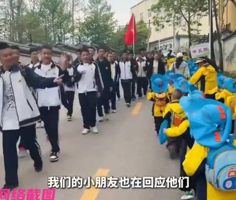 看眼前大小学生的互动中,留有相当暖心,所有人看到都会特别舒服这样的画面,因为这是心有共鸣的时刻,让此刻的每一分钟里,有让人觉得的浪漫与舒畅,这有两个年龄差异的两群孩子在美好的邂逅中,有了亲近的招呼。