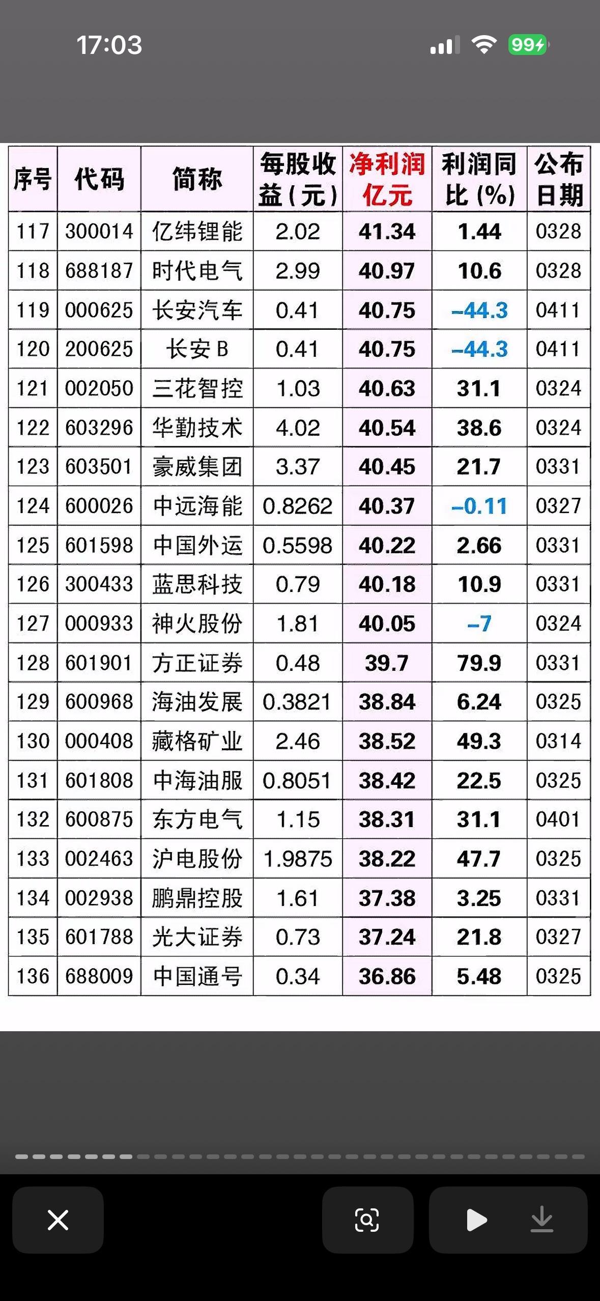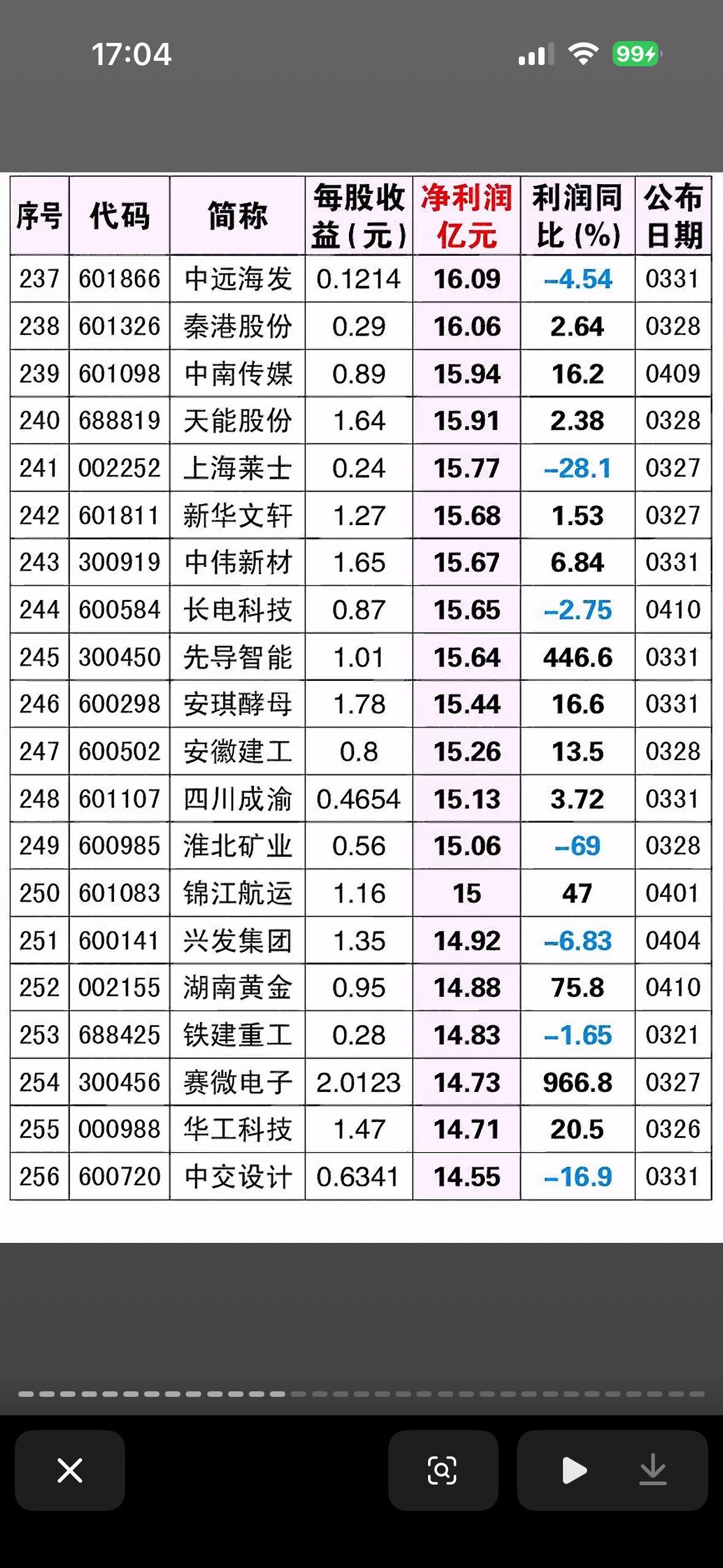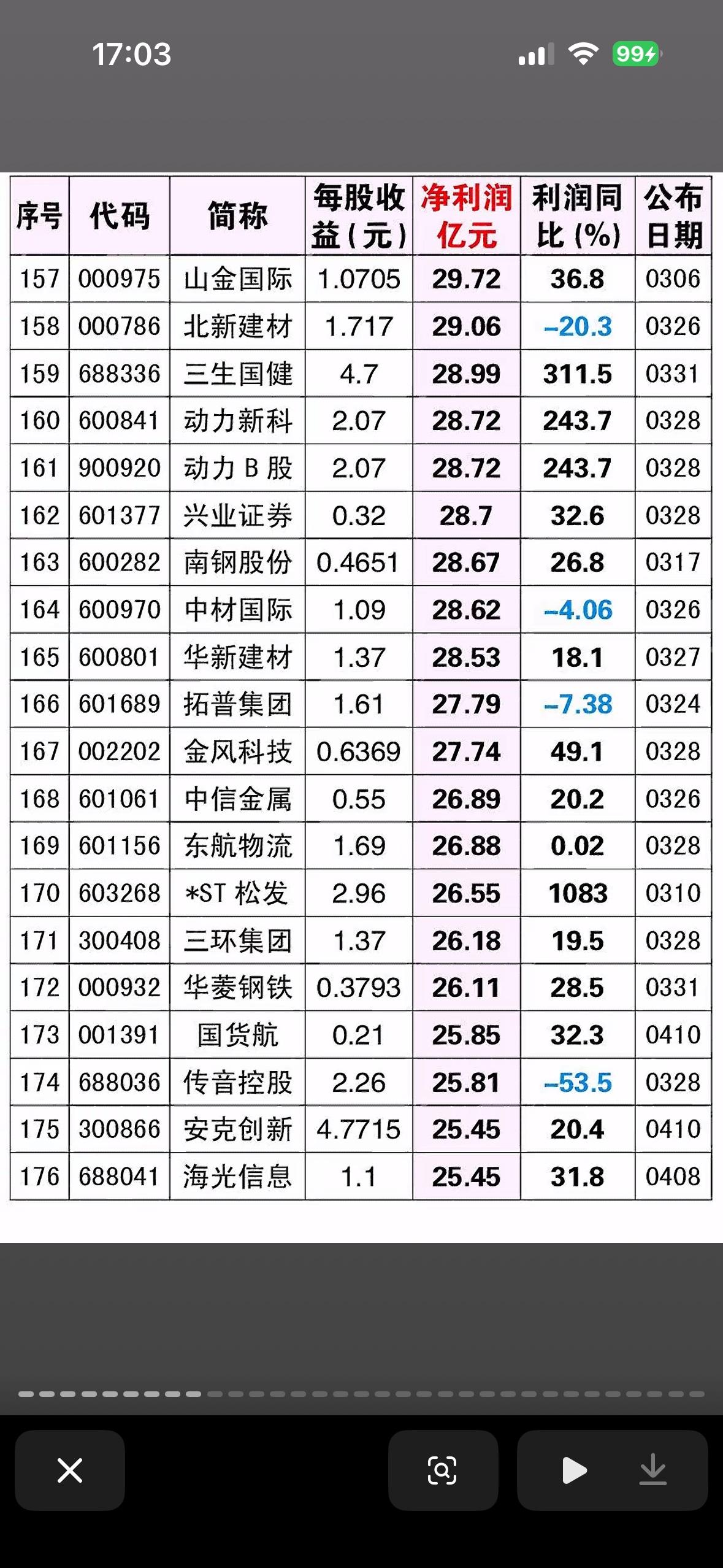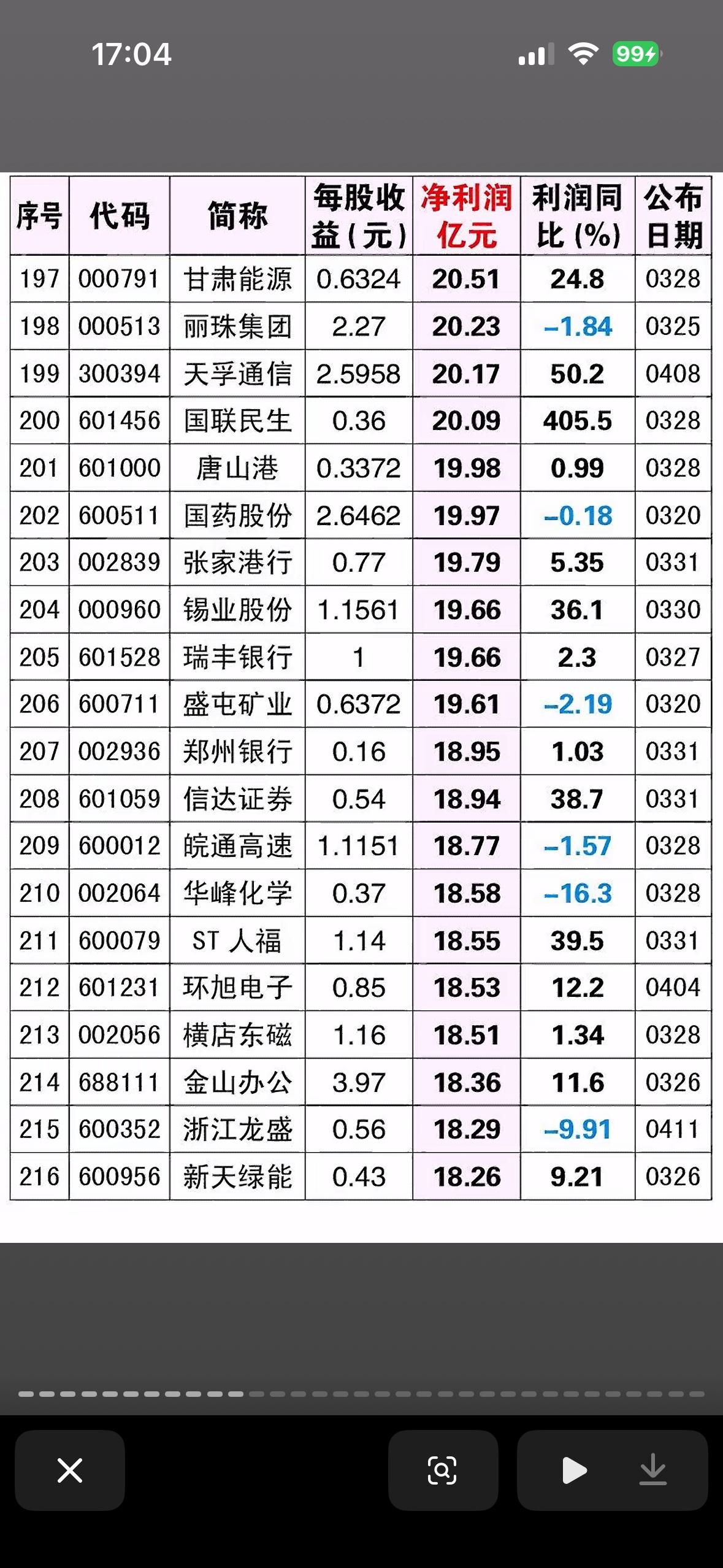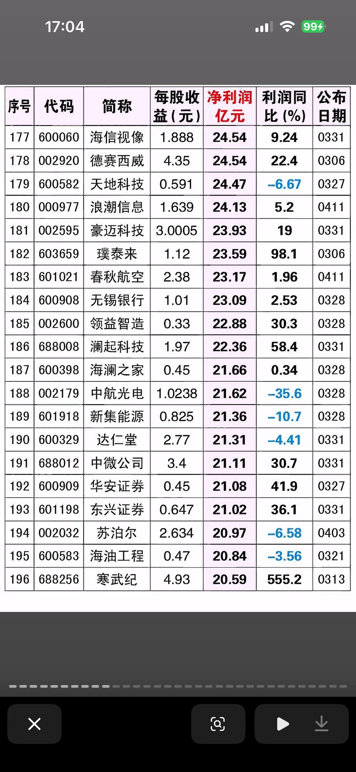 - 四大行(工、建、农、中): 合计净利润超过1.2万亿元,是A股市场的定海神针。
