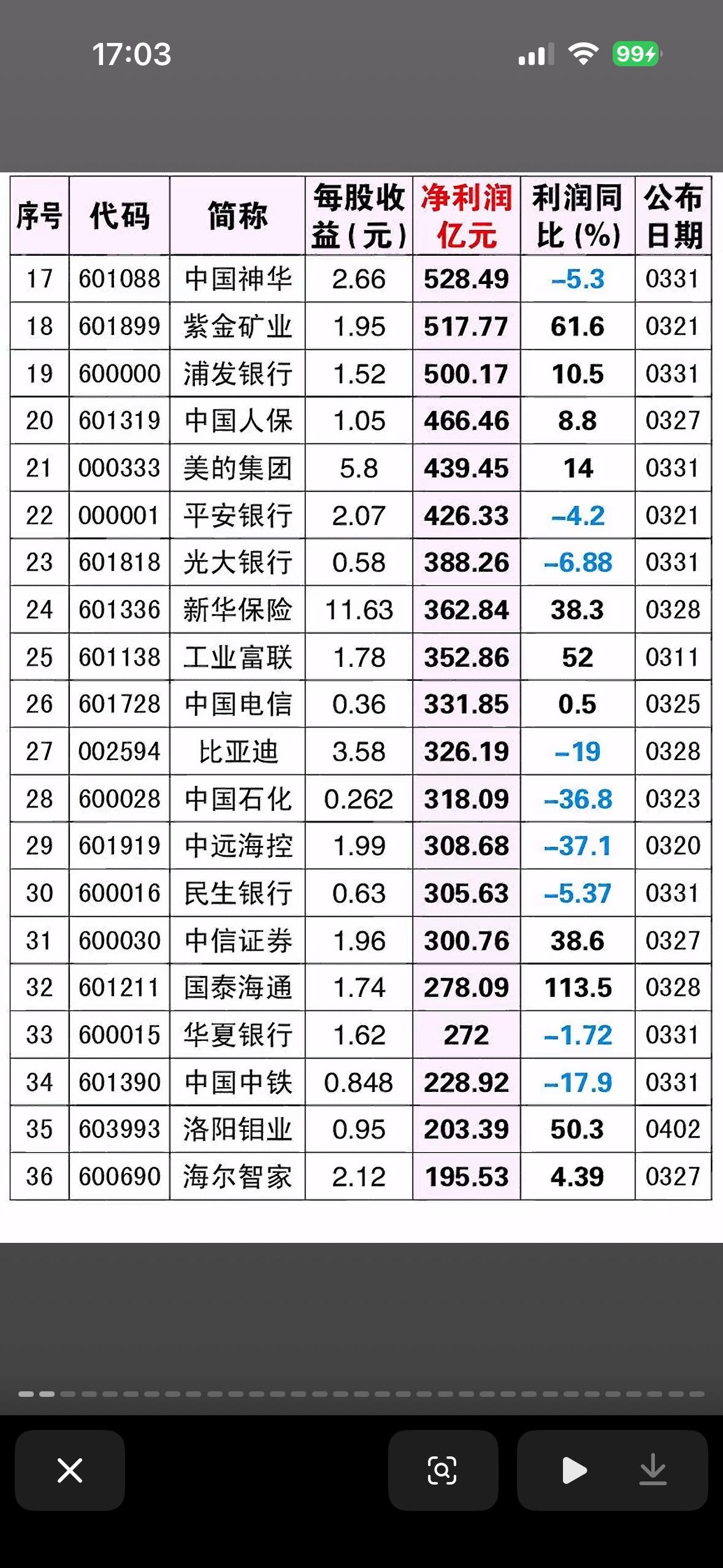 - 能源与资源(3家): 中国石油、中国海油。虽然利润同比有所下滑,但千亿级别的利润体量依然惊人,是市场的“现金奶牛”。