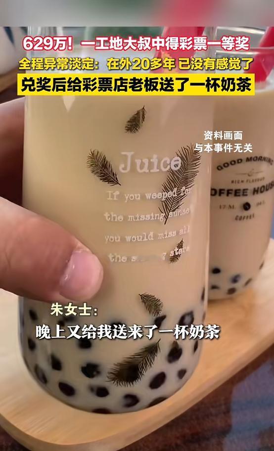 有人说,中了几百万还能如此淡定,太难能可贵了;也有人说,大叔朴实又真诚,中了大奖还不忘给老板送奶茶,这份心意,比奖金更珍贵。而大叔对此,依旧不为所动,依旧保持着自己的节奏,没有被巨额奖金打乱生活。