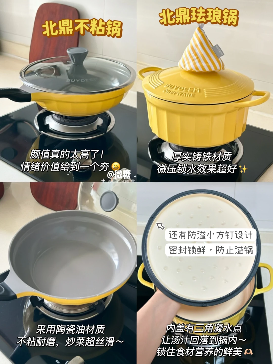 北鼎珐琅锅更是厨房的全能选手😙三角凝水点搭配微压锁水,锁住食材营养!平时炖肉煲汤煲粥我都很爱用它👏🏻锁住每一口食材鲜味~往灶台上一放,连厨房都多了几分春日的温柔~
