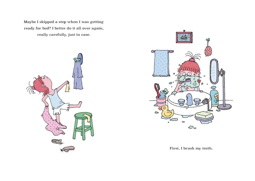 她先是像往常一样重复了一遍睡前程序:刷牙、穿睡衣、爸爸给她一个晚安吻、关灯。可她还是睡不着。