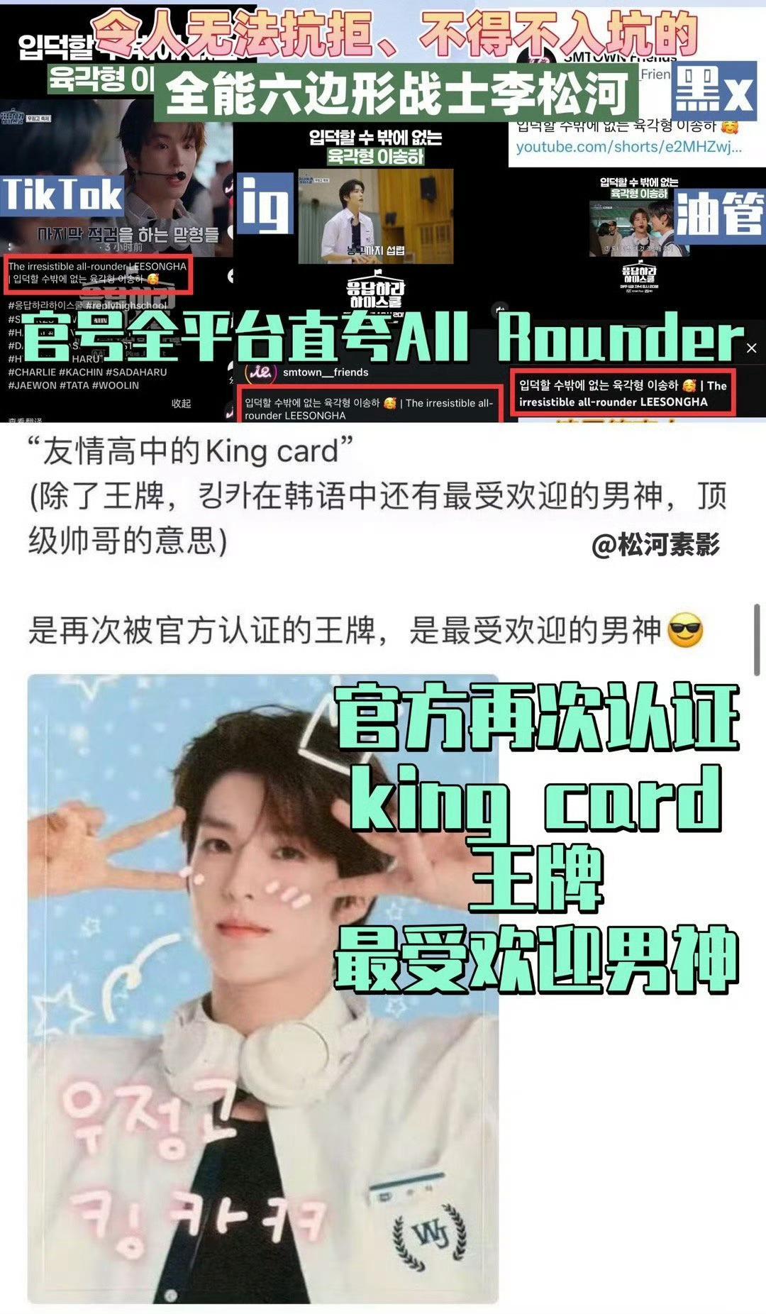 李松河再次被SM官方全平台认证All-rounder,唯一拥有官方认证的ACE,线上线下人气全方位断层碾压!实力与人气双天花板,不愧是六边形全能战士✨