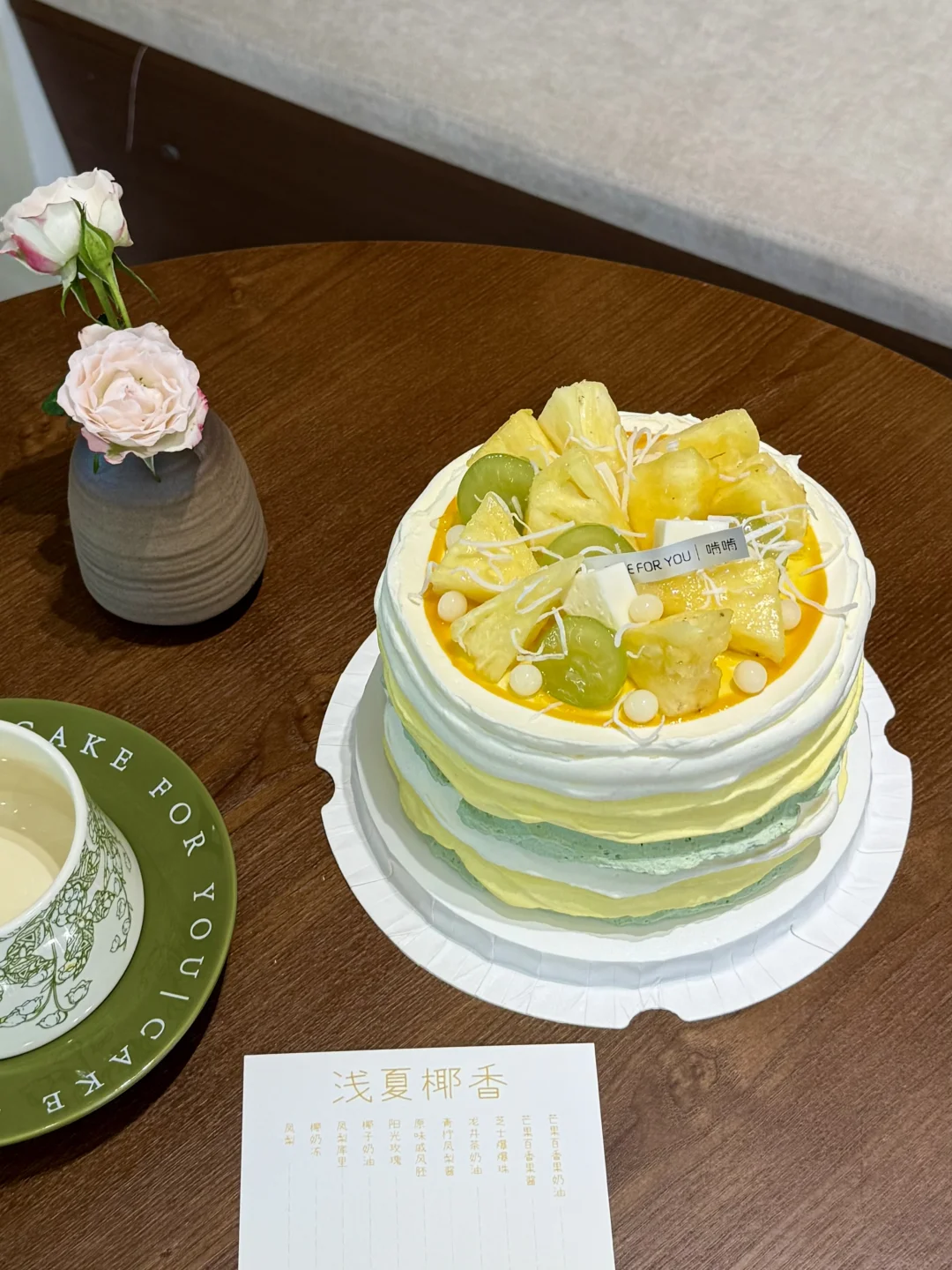 近期吃到最惊艳的蛋糕!配色很春天 味道也好清爽!!口感很丰富 淡淡的椰香跟芒果 凤梨的碰撞 吃起来清新爽口 真的太适合春夏啦~