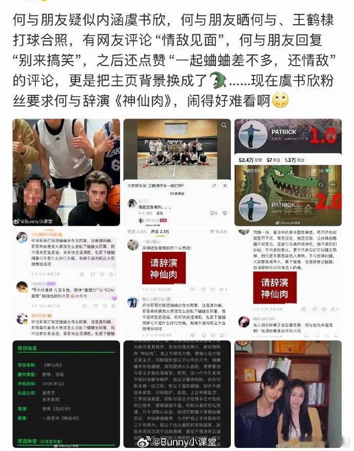 网友致歉称与何与不熟看了半天都没人说清楚到底怎么回事,然后就这么一出。是现在另一种宣传新片的手段吗?不然都不知道虞书欣要和何与演《神仙肉》吧。所以里面也有王鹤棣?还是二选一?