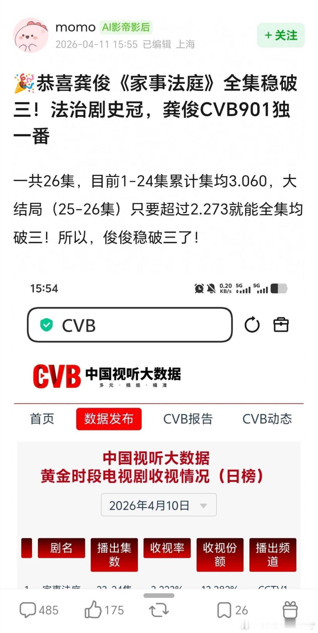 恭喜龚俊《家事法庭》全集稳破三,法治剧史冠,龚俊CVB901独一番!家事法庭