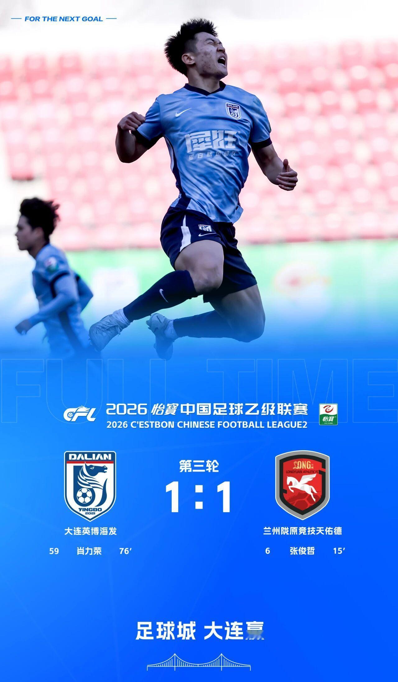 英博2026·B队战报|肖力荣进球 大连英博B队1-1战平兰州陇原竞技天佑德队