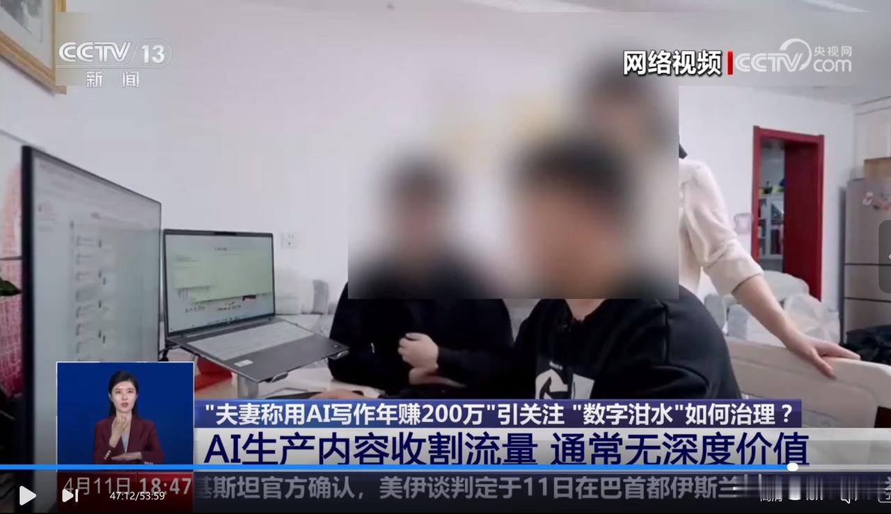 央视报道“夫妻AI写公众号年赚200万”事件,不过主题是数字泔水,不是割韭菜