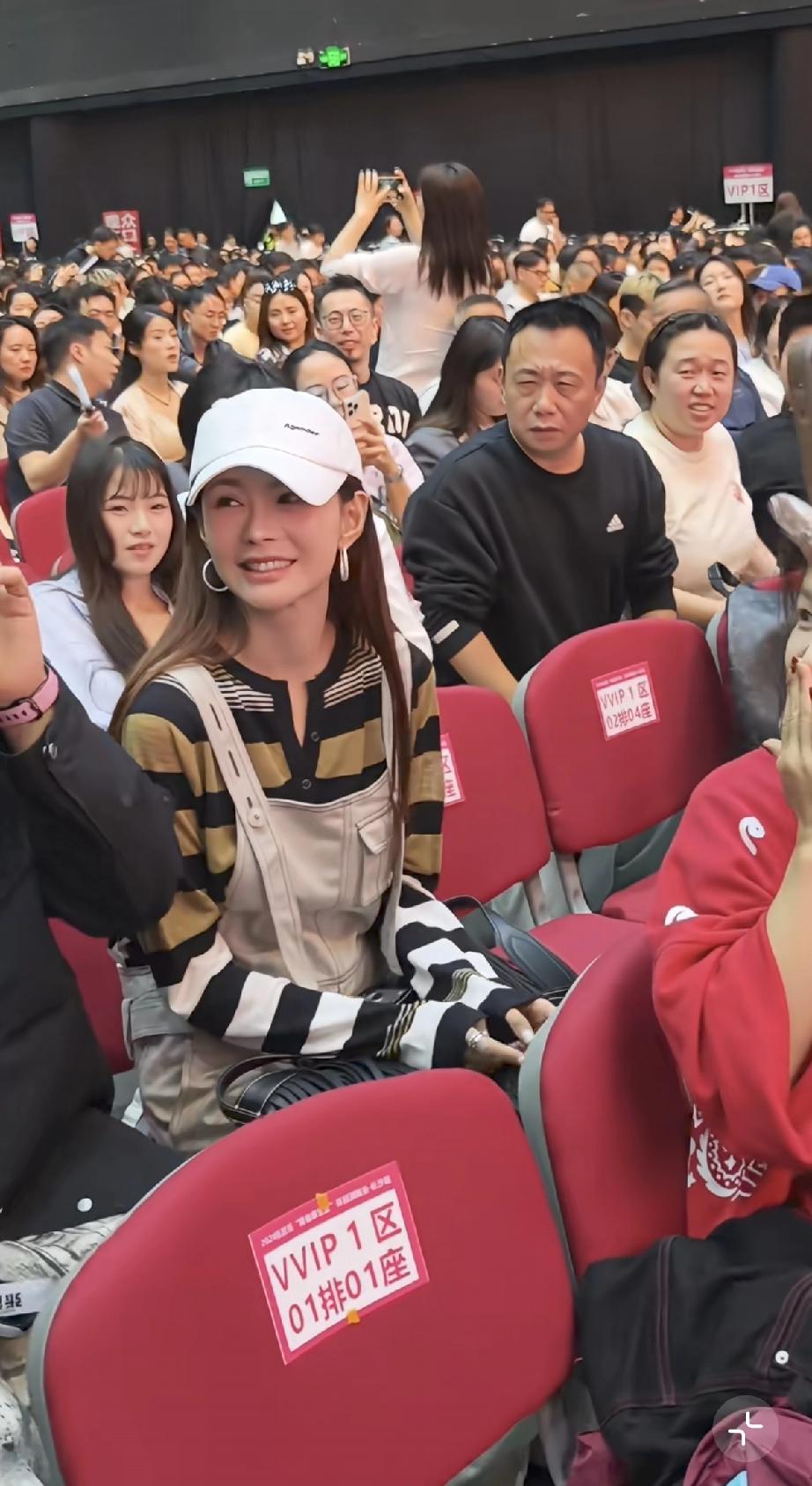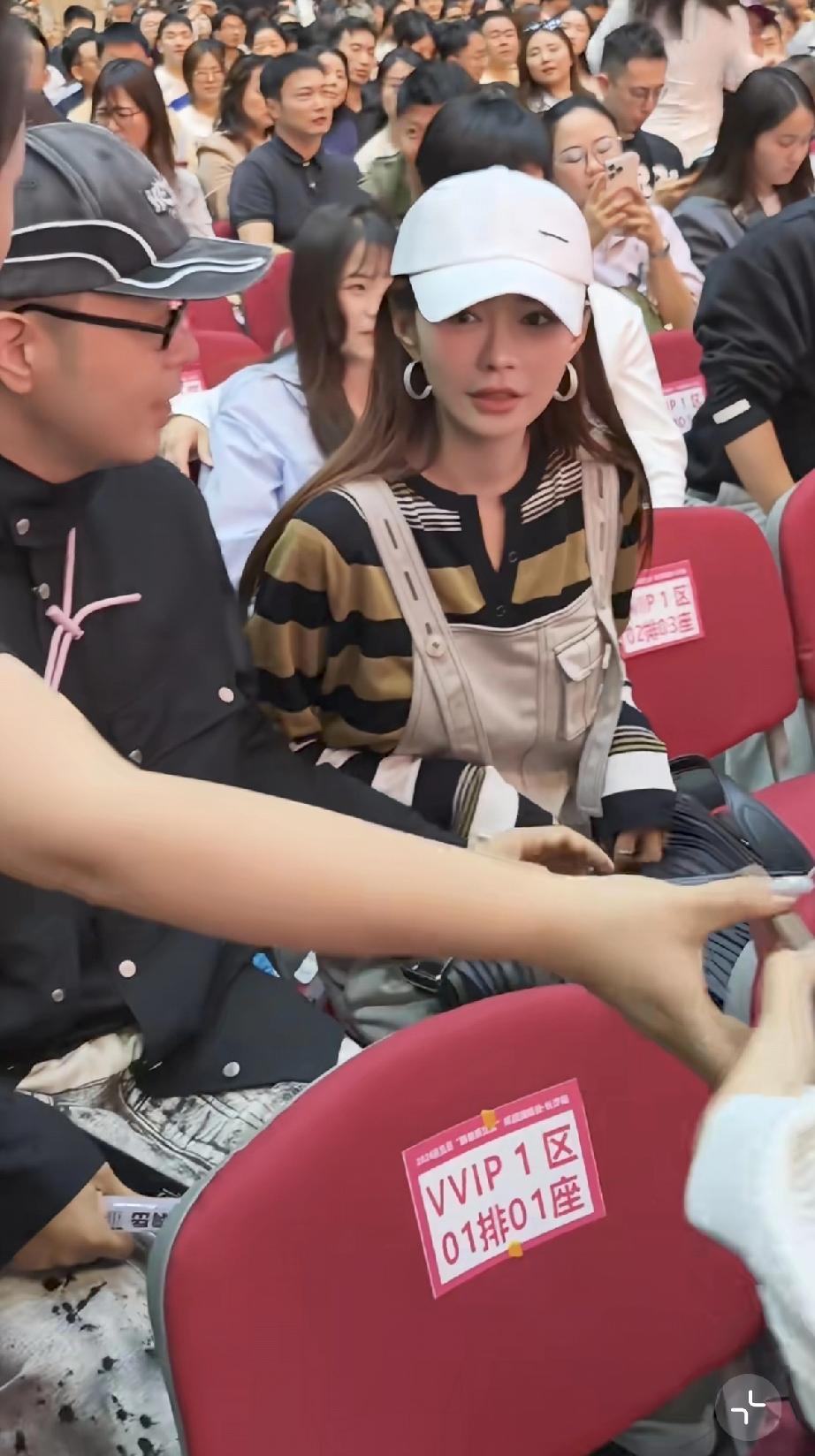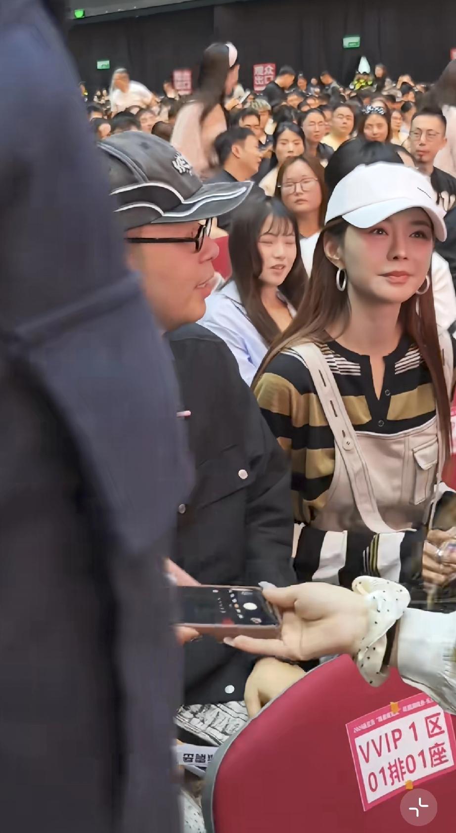 杜海涛与沈梦辰此次出现是以普通情侣的身份,他们坐在人群中本来只想调低调,但还是能一眼就被认出来,很多人都在看他们。