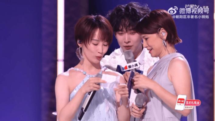 谢楠从鞋里拿出拉票小抄 谢楠的拉票环节感觉她才是浪姐的主持人,楠姐明年来做主持吧!