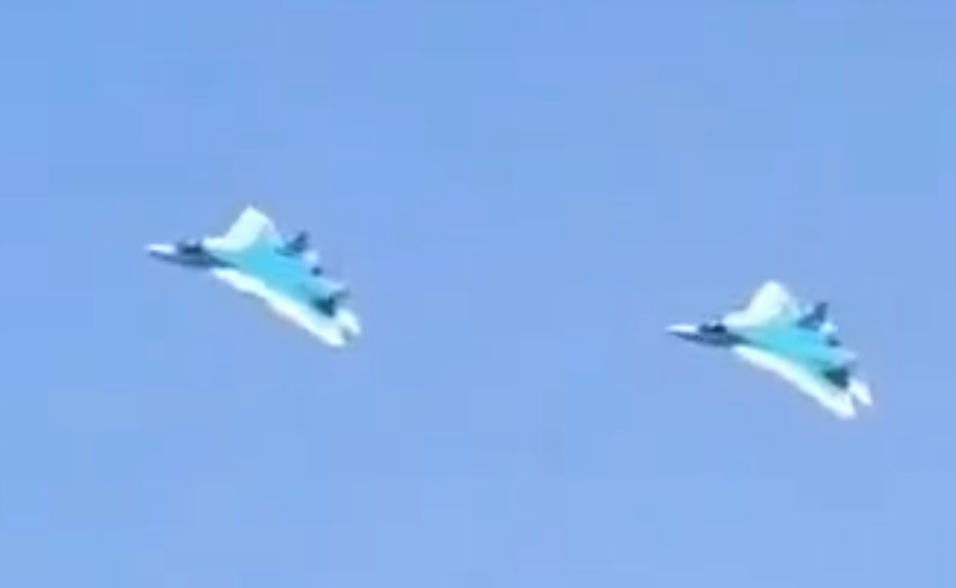 阿尔及利亚老乡蹲守拍摄到了更多Su-57E的画面,这次勉强能看到机背涂装了。可能还是俄罗斯那种数码边缘的双色涂装,但更接近早期原型机上的配色,甚至更加蓝一点,而俄罗斯自用版则是灰色调。