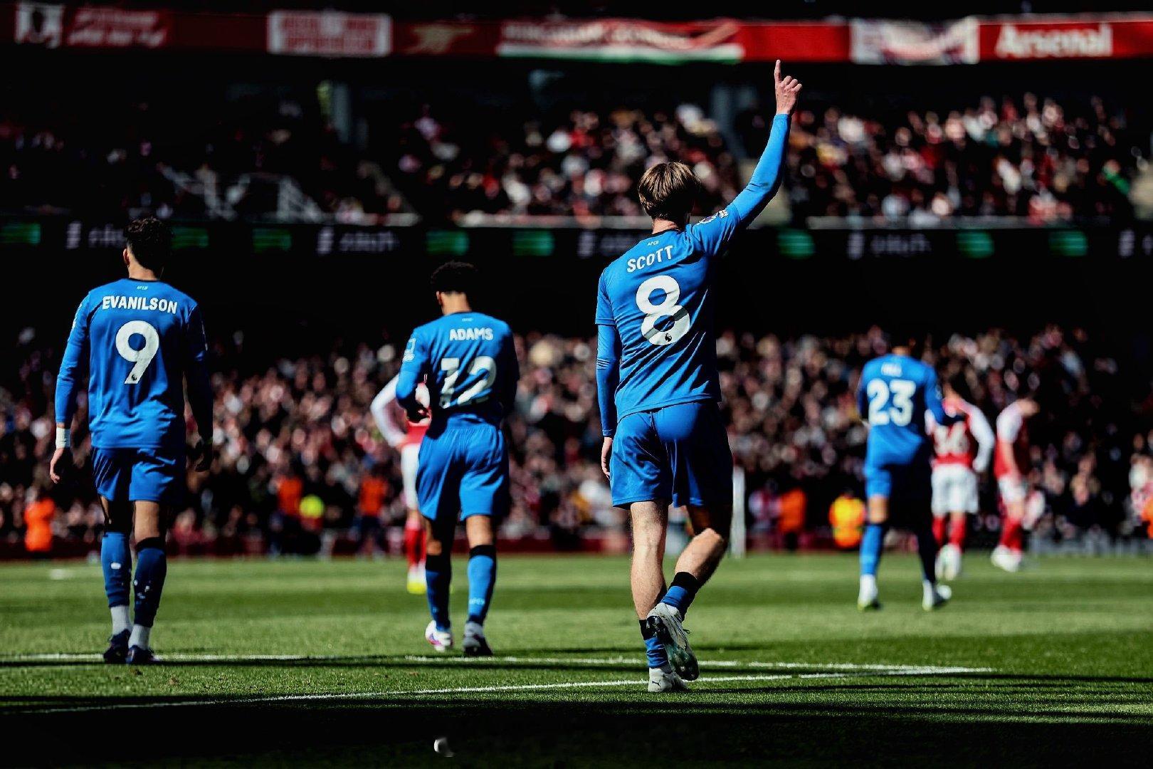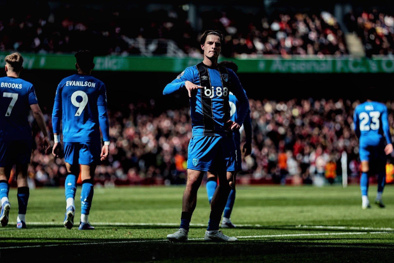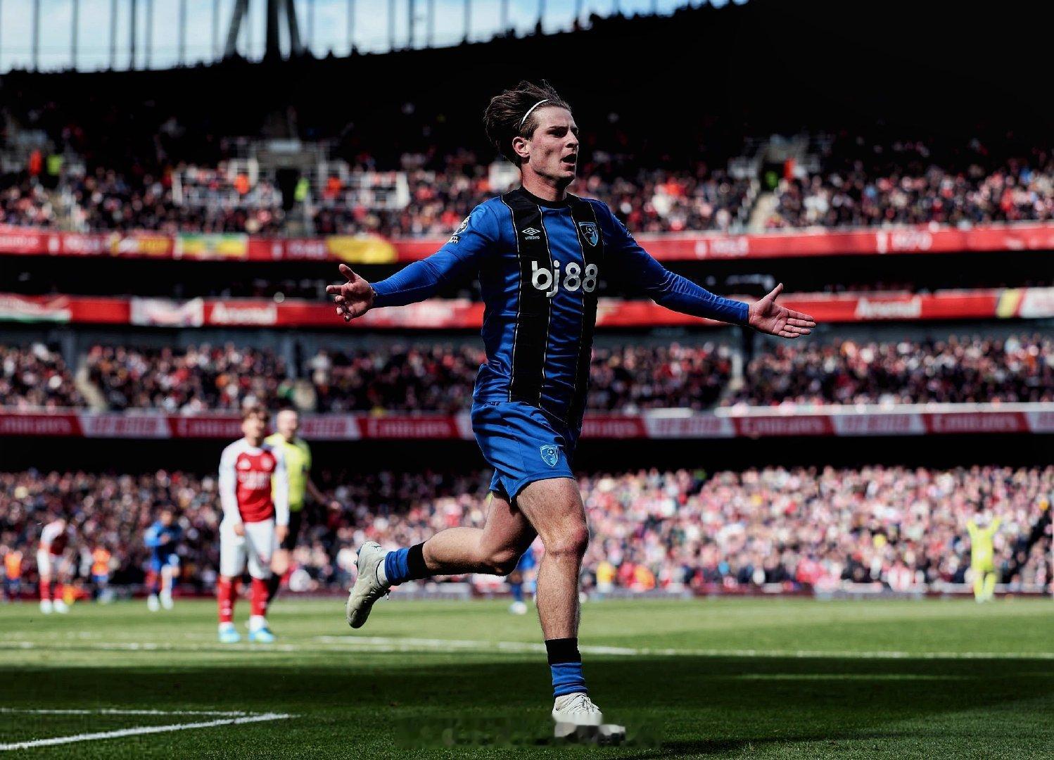 【斯科特激情庆祝的原因】阿森纳1比2伯恩茅斯,24岁英格兰中场阿莱克斯-斯科特,在打进致胜球之后,做出多个庆祝动作。他出自布里斯托城青训体系,2023年夏天以2500万英镑高价加盟樱桃。更重要的是,斯科特从小就是热刺球迷,他并不隐瞒这个事情。
