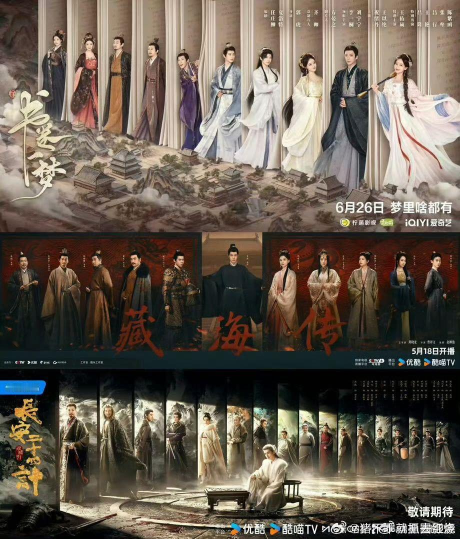 十日终焉长安二十四计海报 我找茬都找不出这种的,中心对称排列构图,是通用海报底层逻辑,这波《十日终焉》真的无妄之灾了,《长安二十四记》扑了后的yx就是到处碰瓷和捆绑啊,不知道谁又眼红跳脚了,🥱如果要鉴起源那成毅下面这张怎么说?好丢人哦