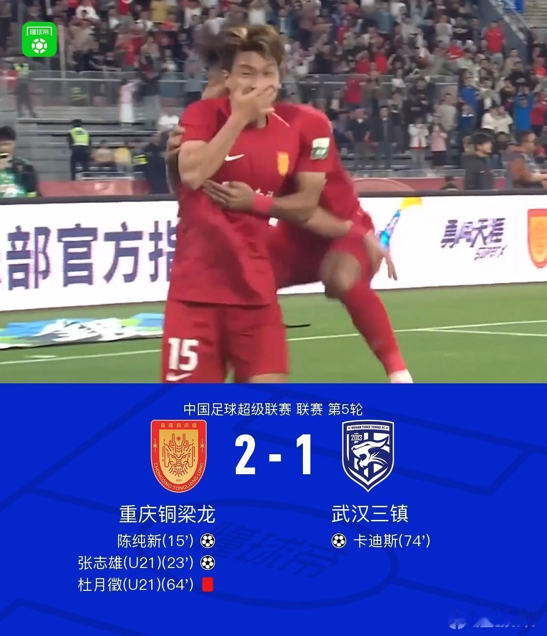 十人铜梁龙2-1三镇暂登榜首,张志雄、陈纯新破门。