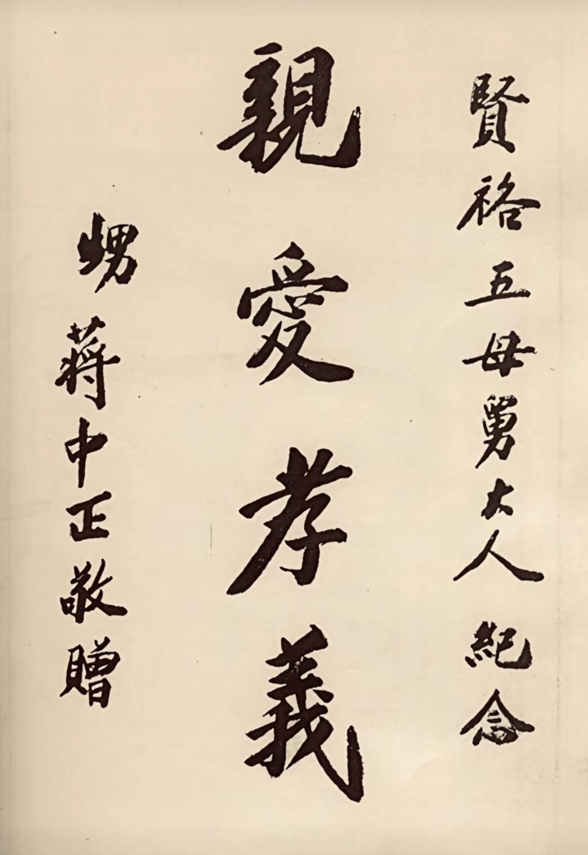 蒋中正给娘舅、表兄们题的字,就书法而言,水平还是很不错的,板板正正,有大家风范。