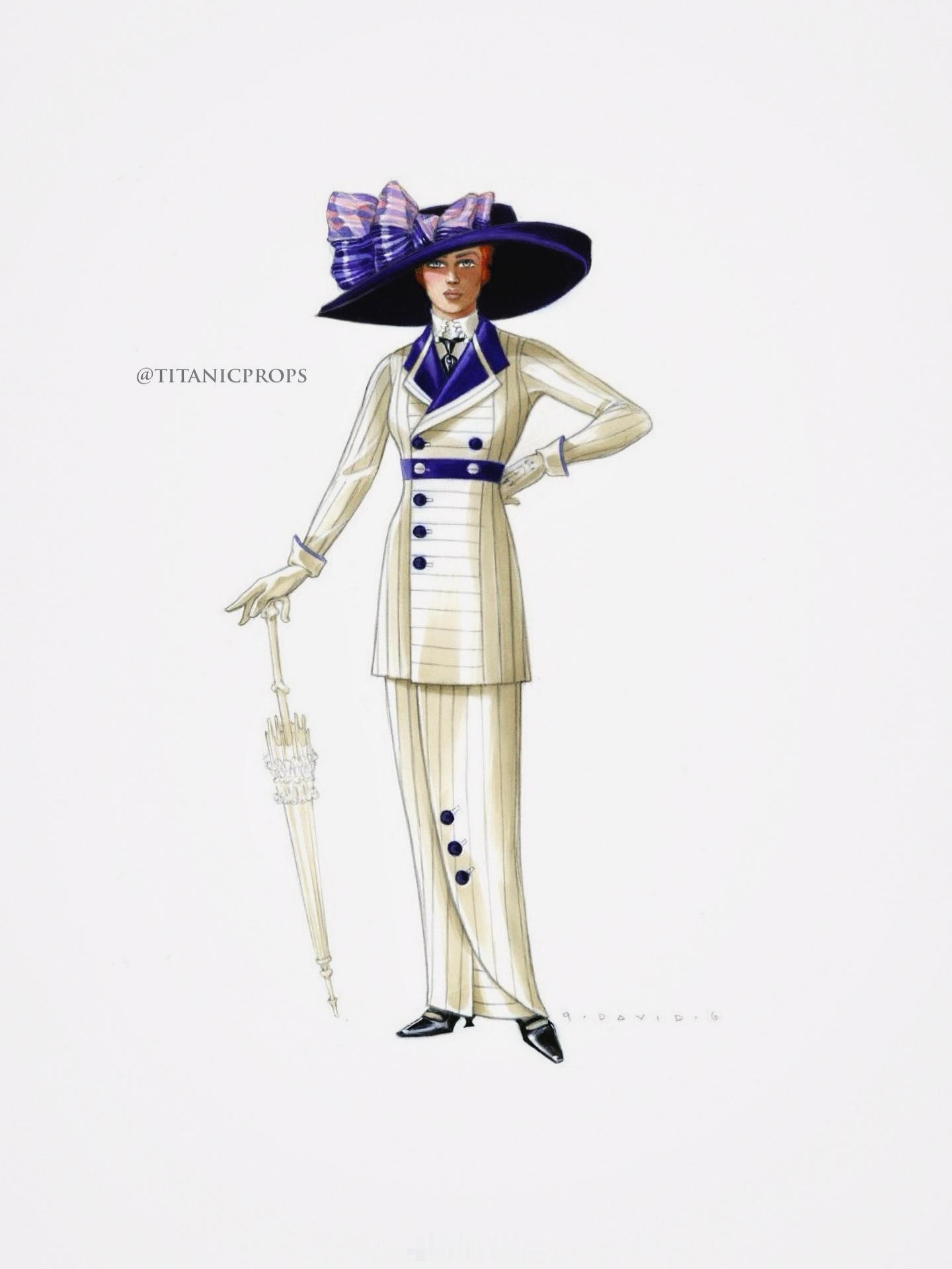 电影搭乘花絮去幕后 贵气却又带着反叛和自由感的Rose——【泰坦尼克号】造型师,公布了凯特·温斯莱特凯特温斯莱特 在本片的“露丝”定妆照+服装设计手稿概念图,爱德华时代+ 保罗·波烈解放风格,S 曲线 → 直线/高腰的过渡期,华丽、修身、长裙、大帽、蕾丝,真好看!💖我在微博聊电影