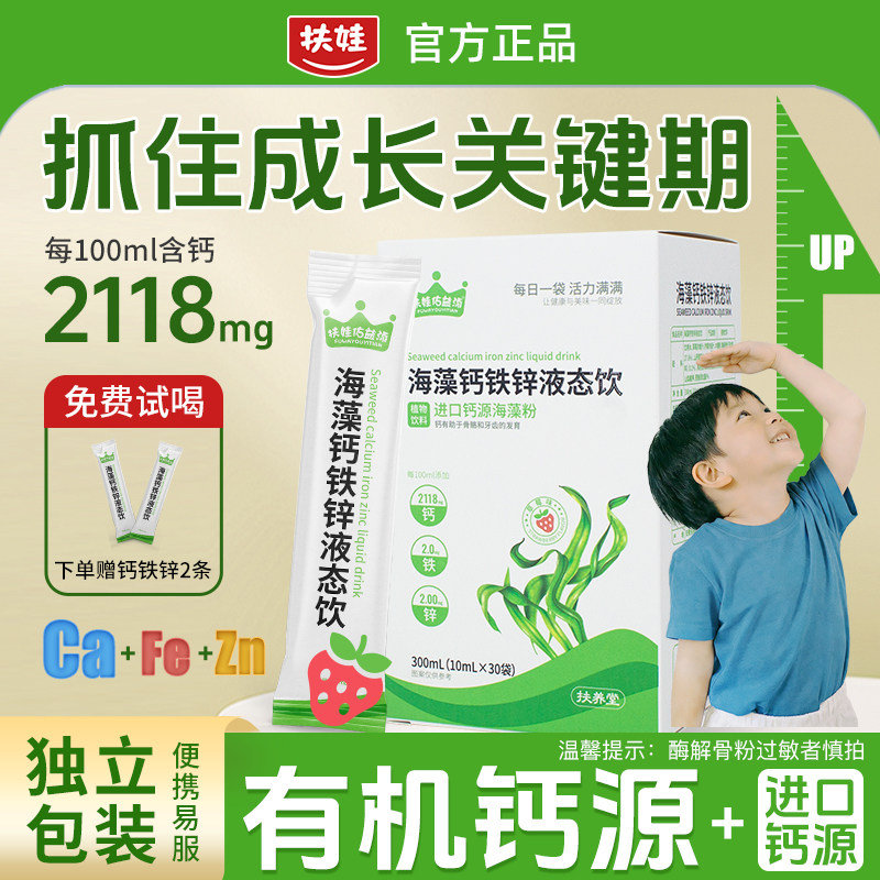 【60袋】扶娃儿童液体钙全面钙铁锌镁直饮包