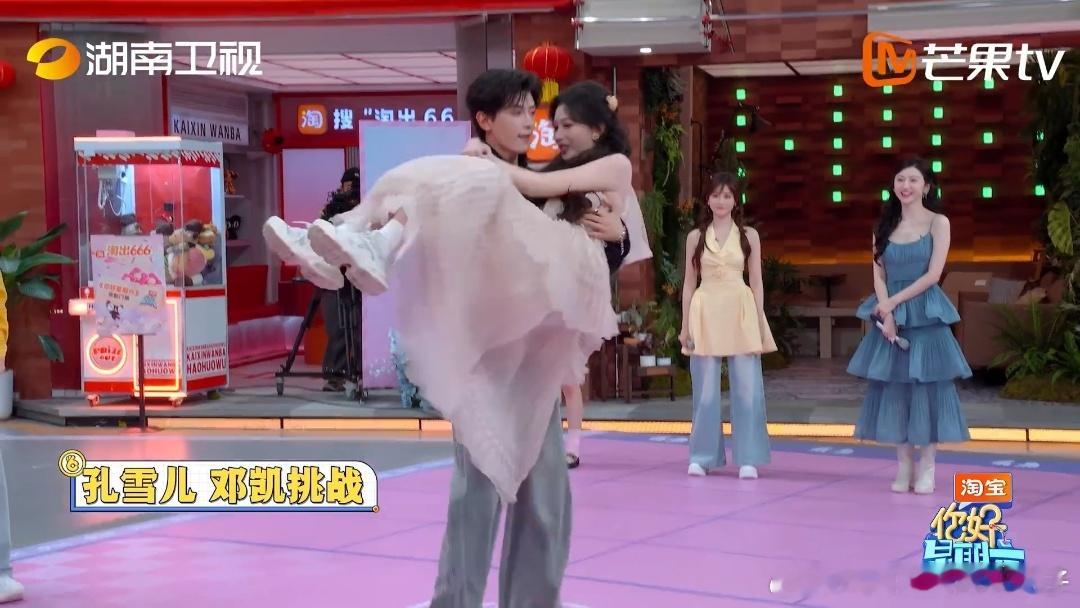 邓凯公主抱孔雪儿深蹲邓凯孔雪儿公主抱 邓凯和孔雪儿玩公主抱游戏,这画面太有爱了!邓凯做得轻松,孔雪儿笑得开心,两人之间的氛围轻松又暧昧,简直是CP粉的盛宴!