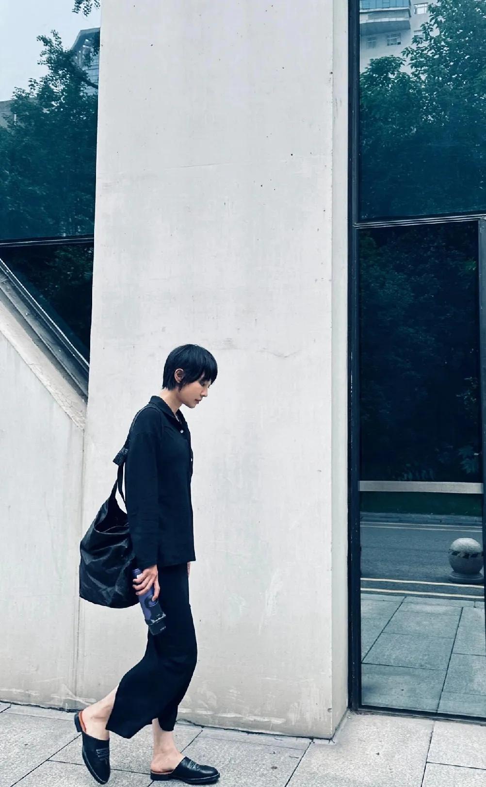 被白百何这身穿搭狠狠种草! 黑色长袖+阔腿裤,简约不简单, 松弛感拉满,通勤、日