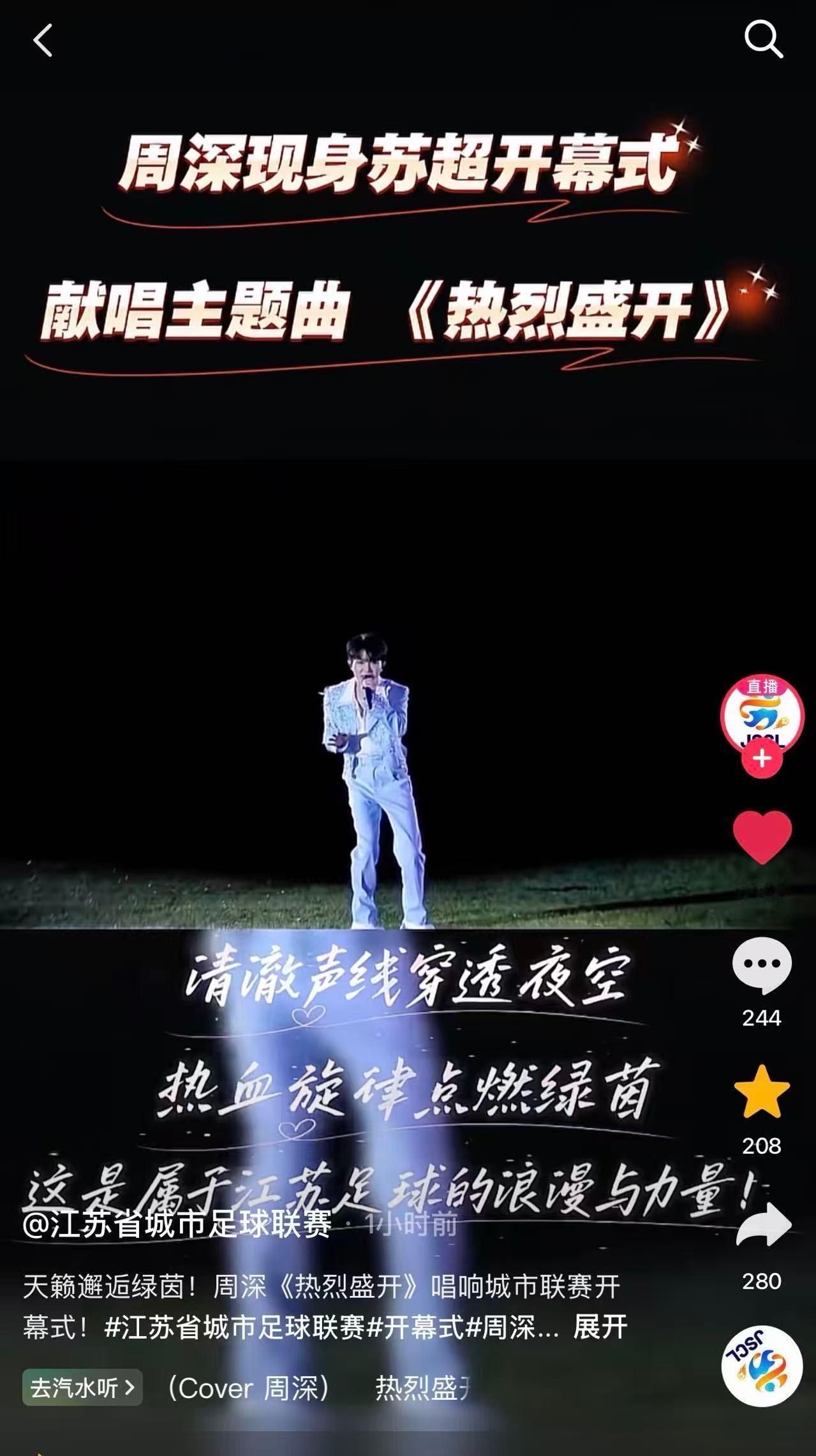 周深 📣 4.11 苏超舞台物料 📣【央视新闻】🎶➕vx视频【苏超】🎶